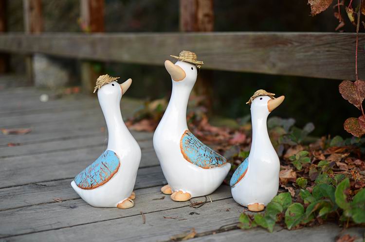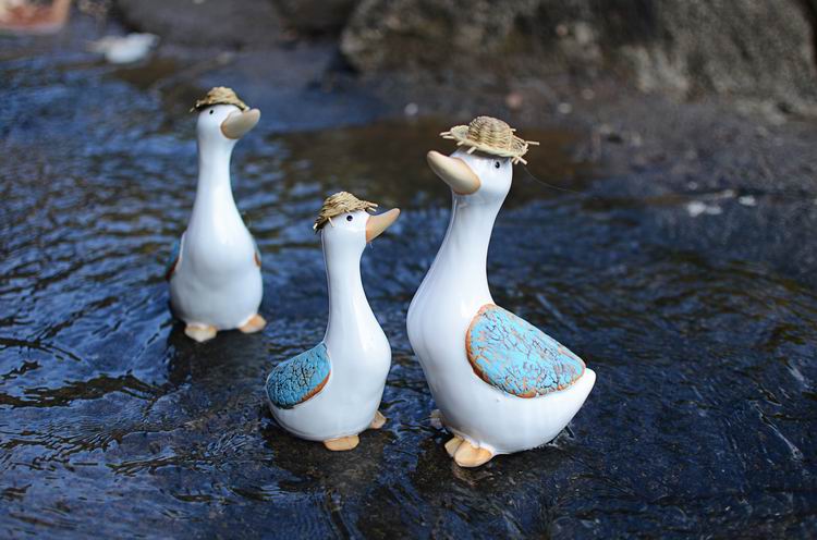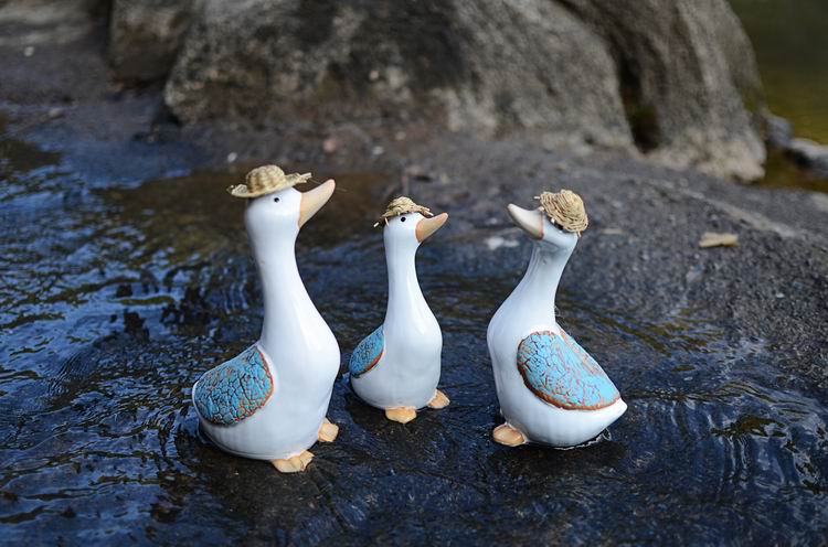 別墅戶外小型動物擺件 公園濕地動物裝飾嘻戲的鴨子三兄弟 A-064