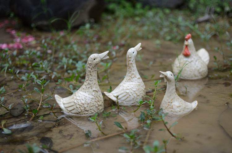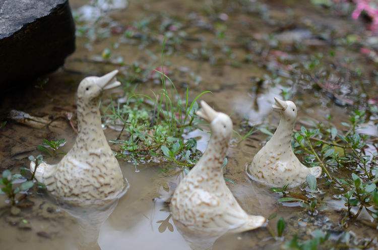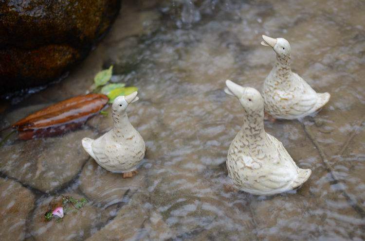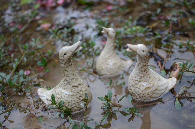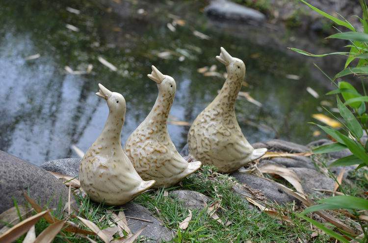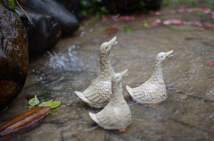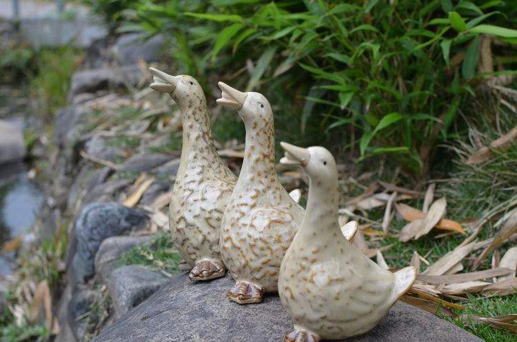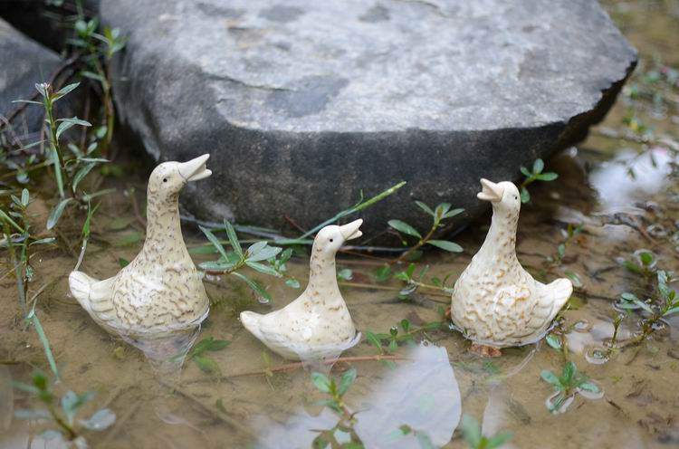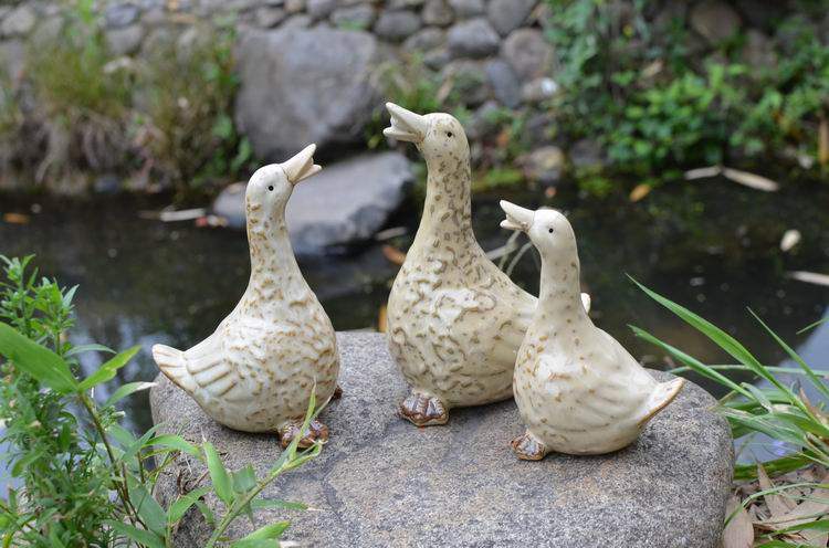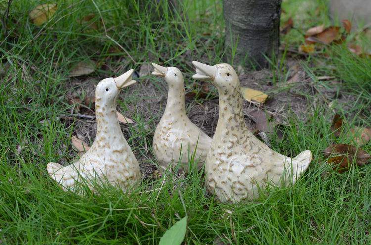 水池造景動物工藝品 陶瓷工藝品 三口之家 陶瓷小水鴨擺件 A-068
