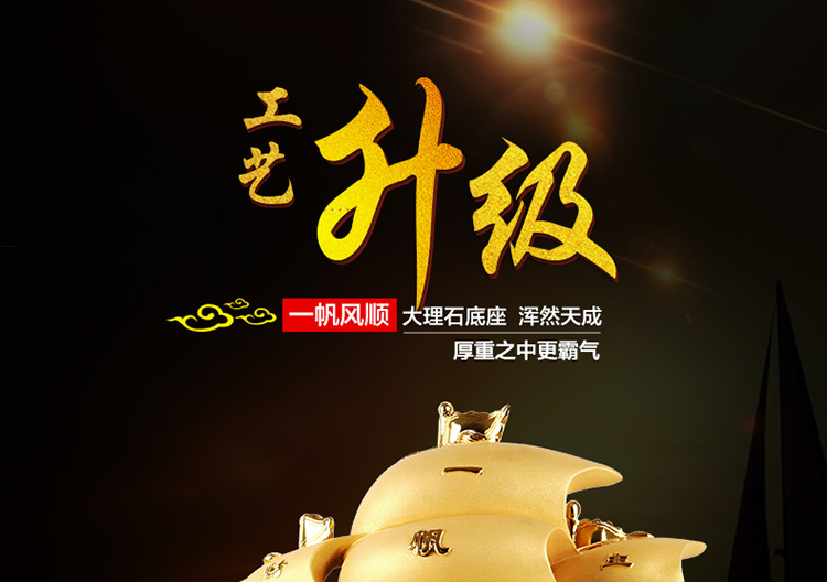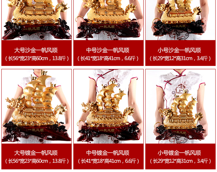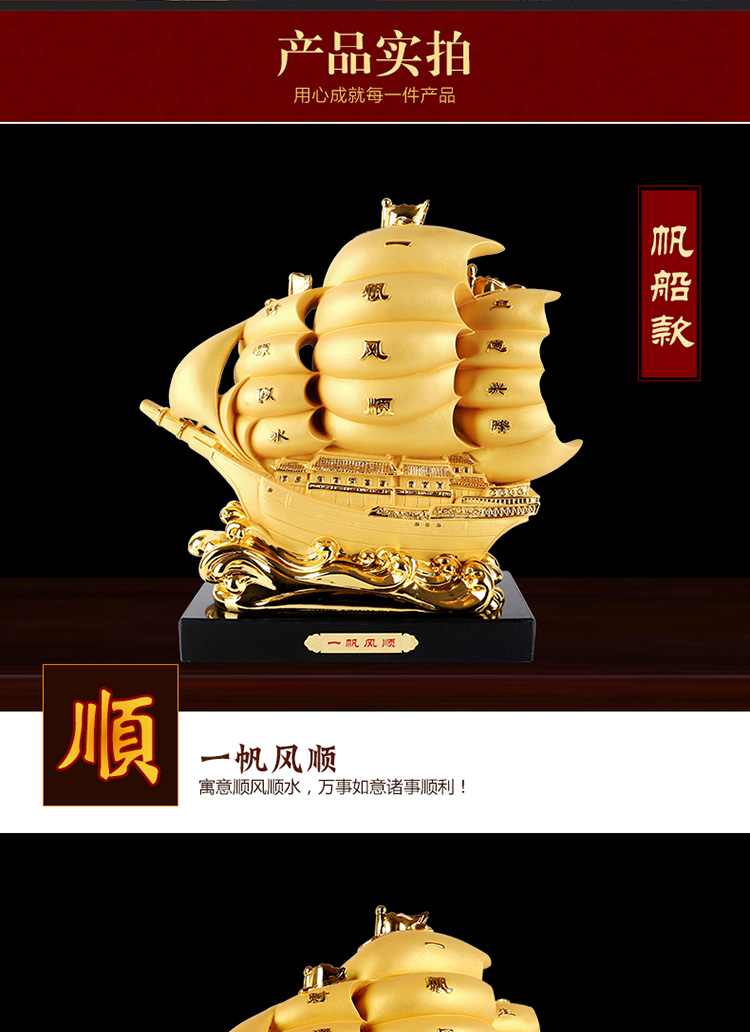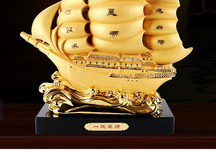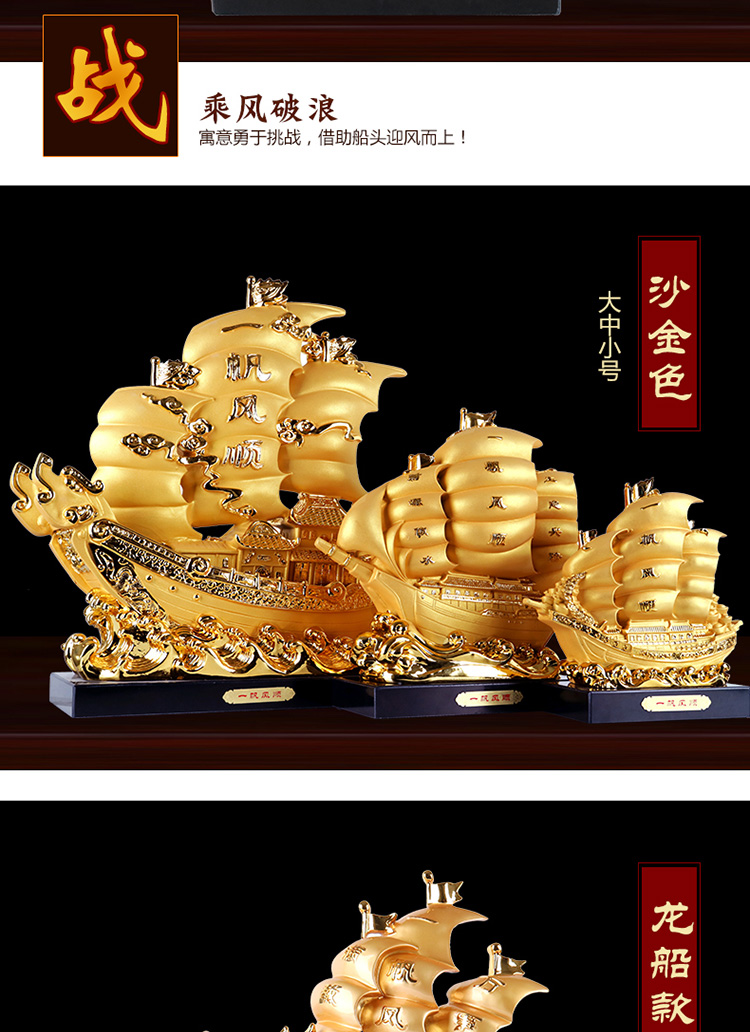中號沙金帆船一帆風順擺件龍帆船辦公室桌面老板桌前臺裝飾品招財喬遷開業禮品
