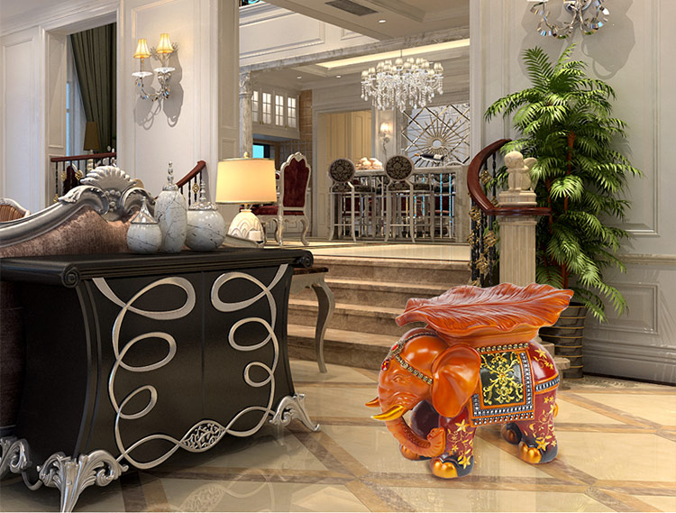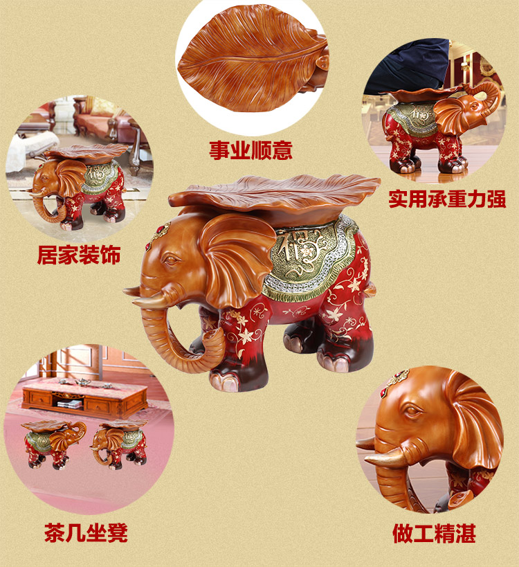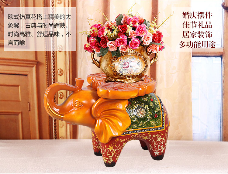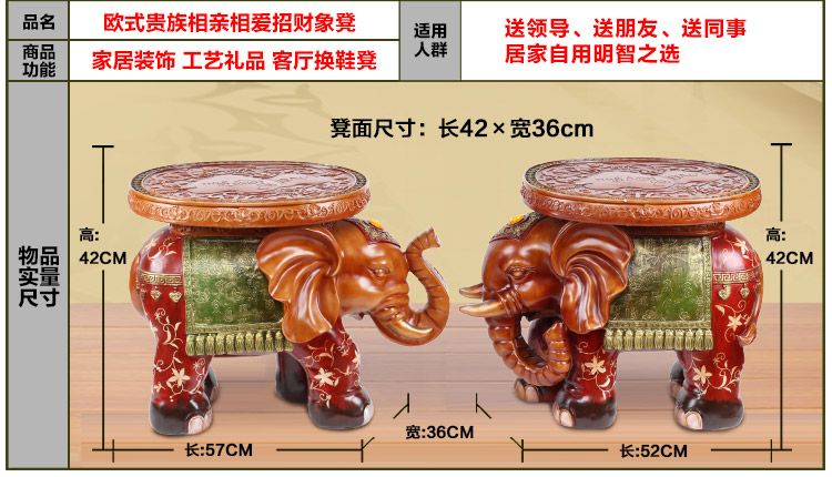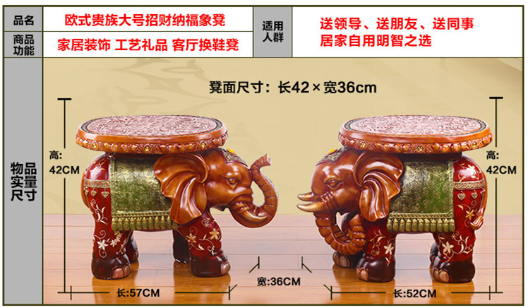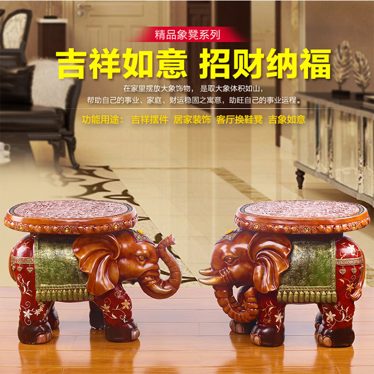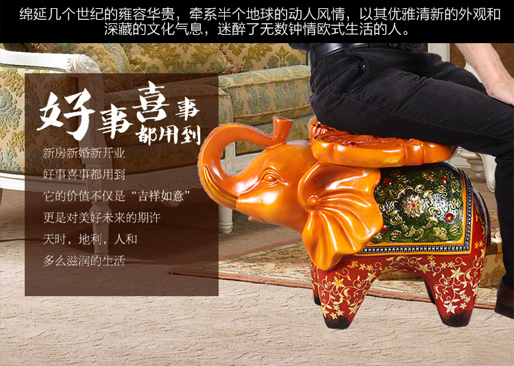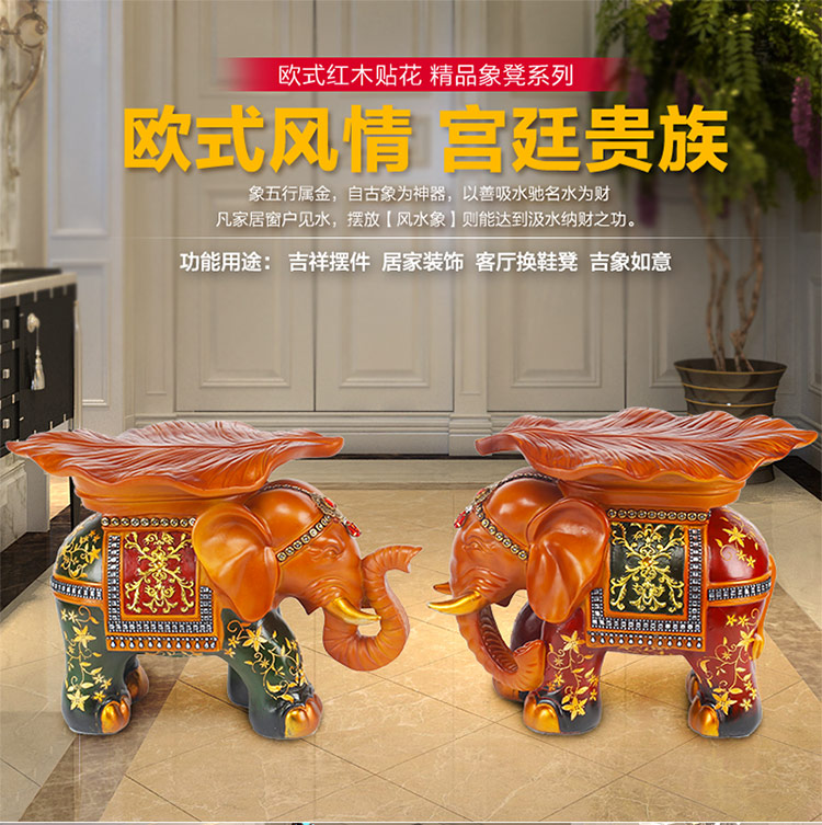 1680小號鼻子向下(貼花)創意歐式仿實木大象換鞋凳子家居裝飾工藝品客廳招財擺件喬遷禮品