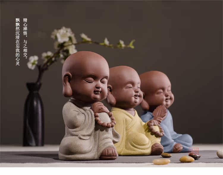 小號1(11X7X10)紫砂禪意小和尚可愛擺件客廳玄關結婚禮物佛堂書房創意人物裝飾