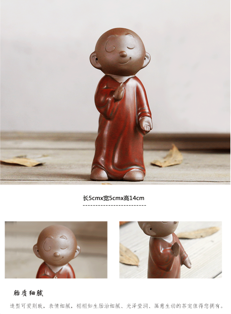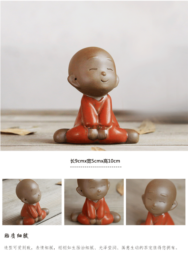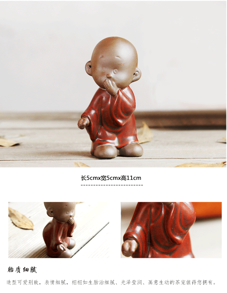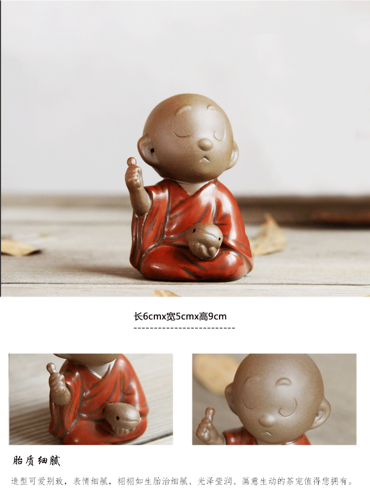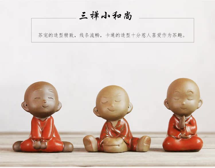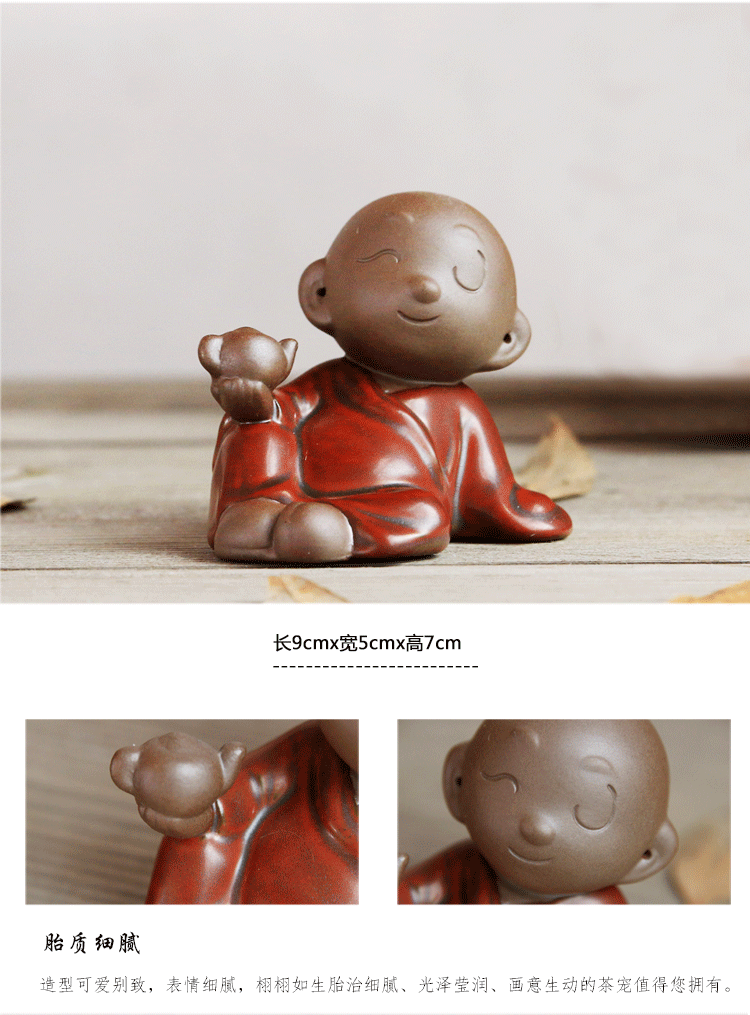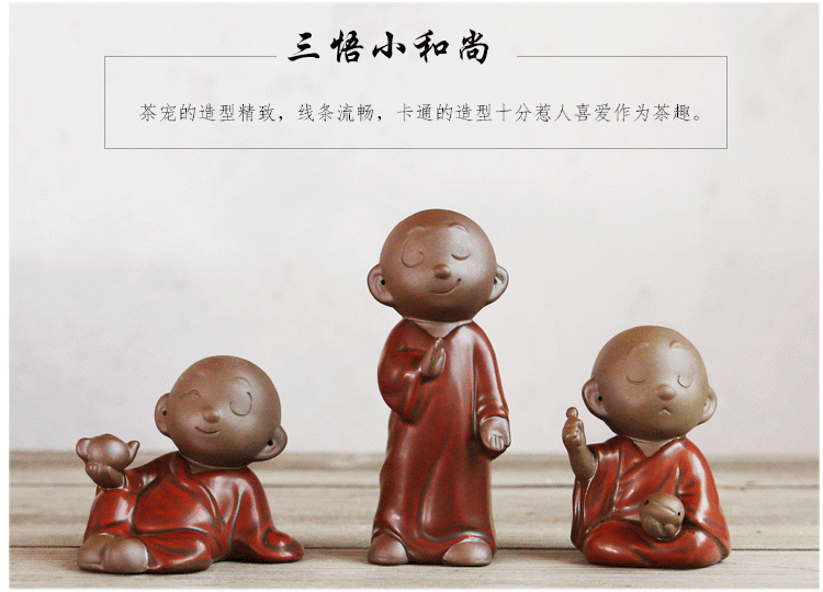 三不紫砂小沙彌家居書房工藝品陶瓷小和尚茶寵小擺件茶道盆栽裝飾品