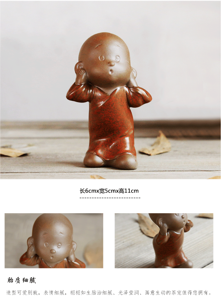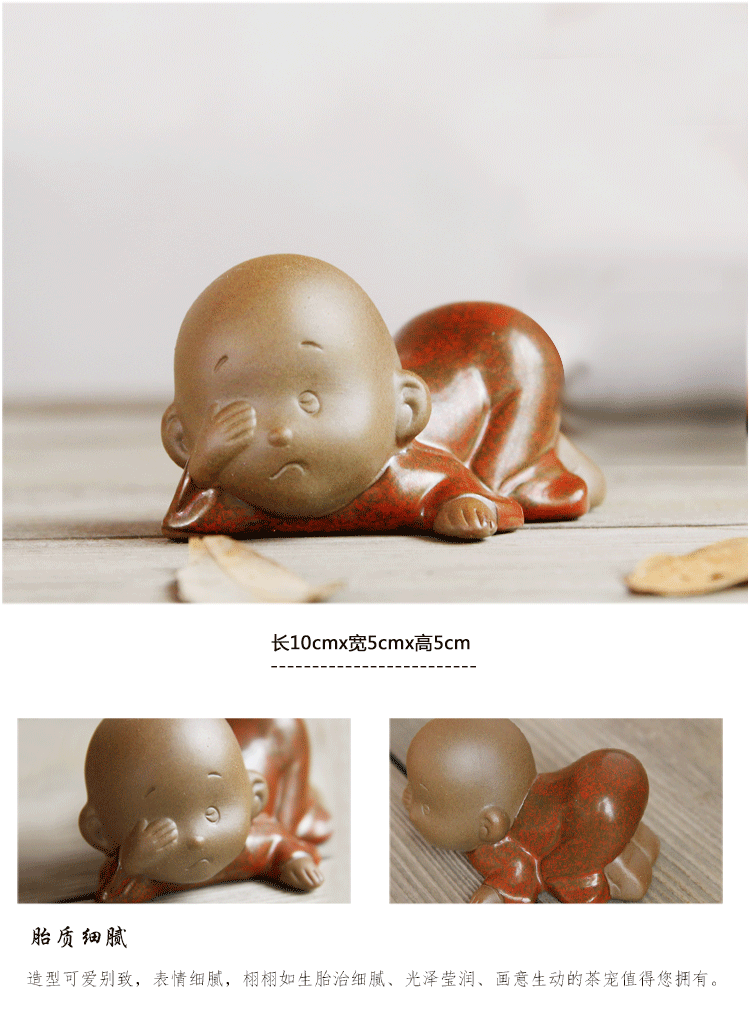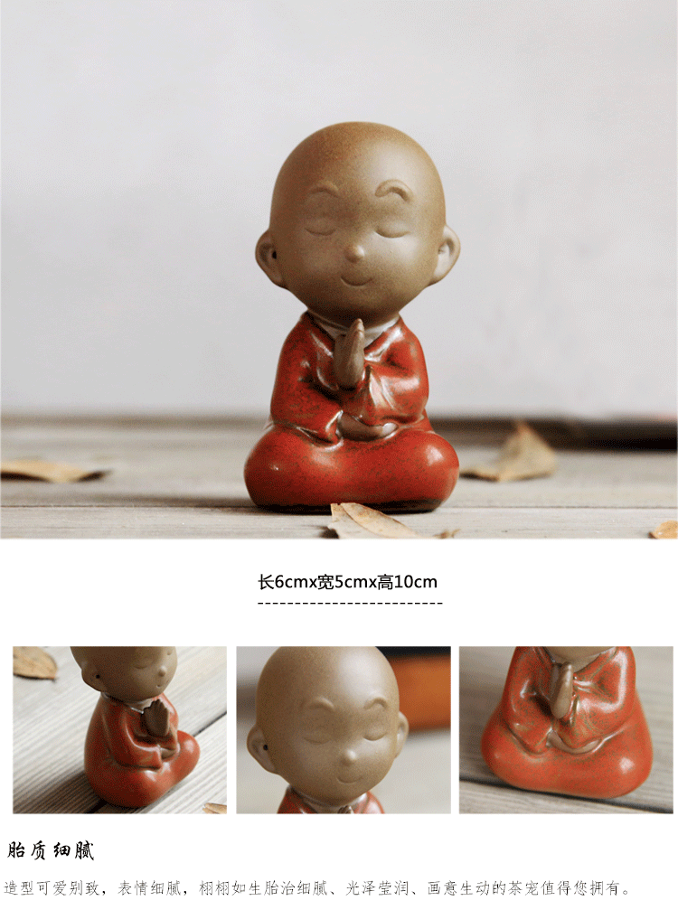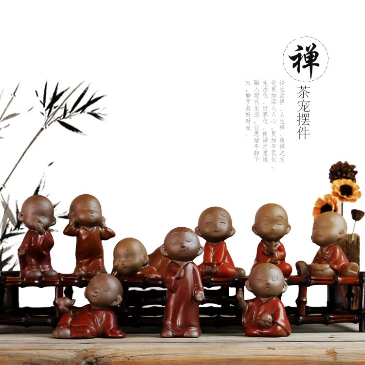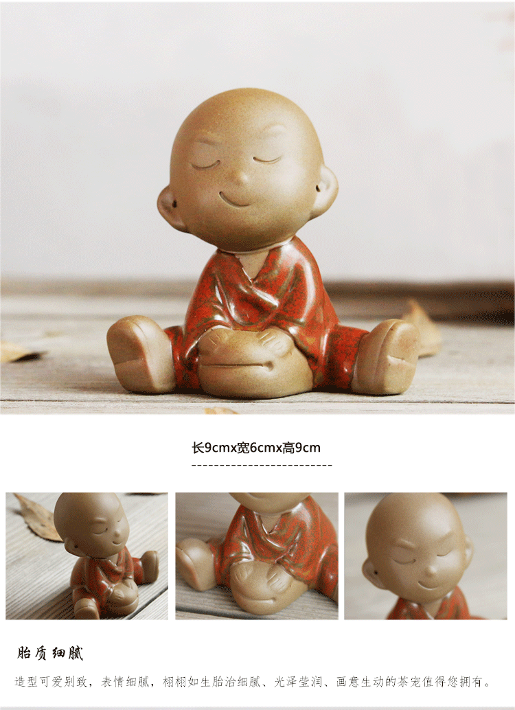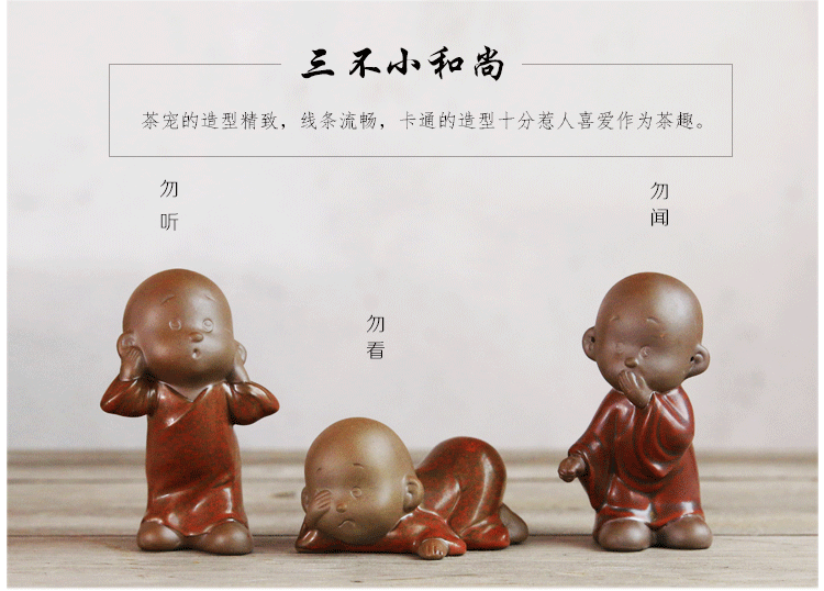 三不紫砂小沙彌家居書房工藝品陶瓷小和尚茶寵小擺件茶道盆栽裝飾品
