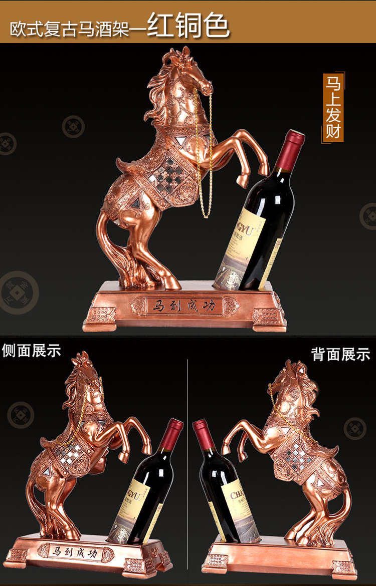 HF039紅銅色創意歐式簡約紅酒架客廳擺件家居玄關酒柜餐廳裝飾工藝品商務禮品