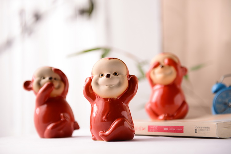 A-194A新品家居擺件 不說不聽不看三不猴年禮物陶瓷工藝品 送禮 A-194
