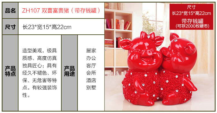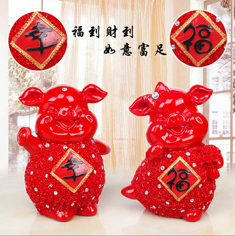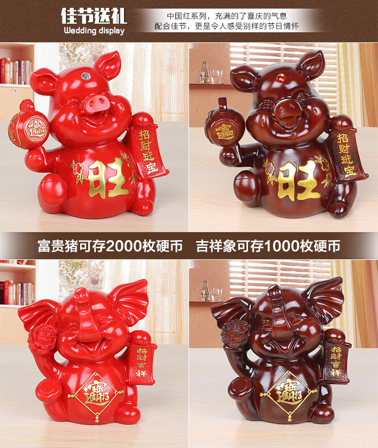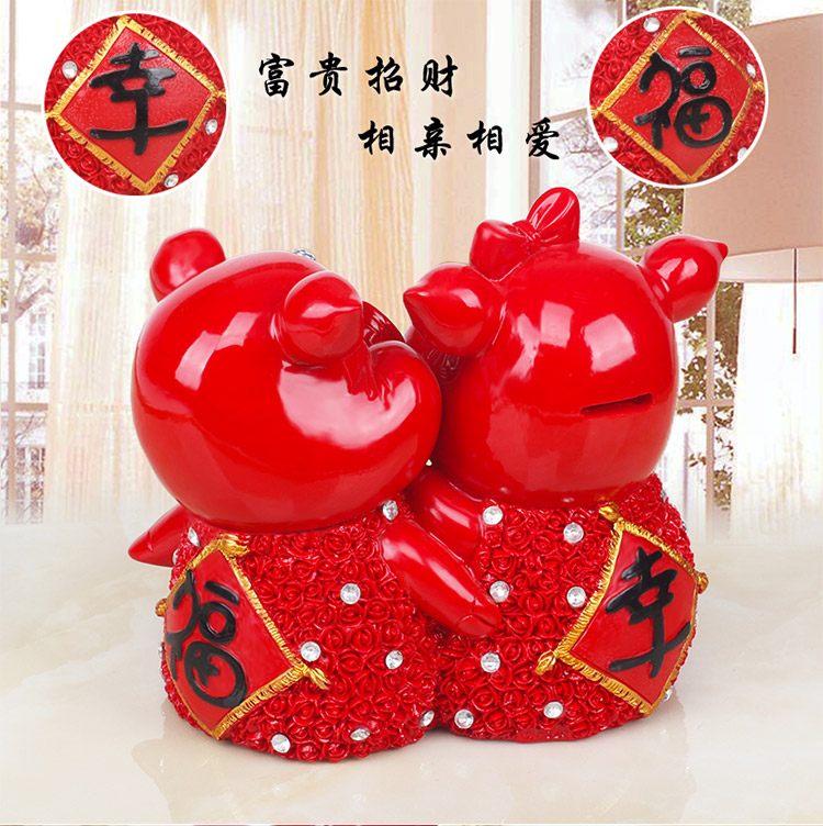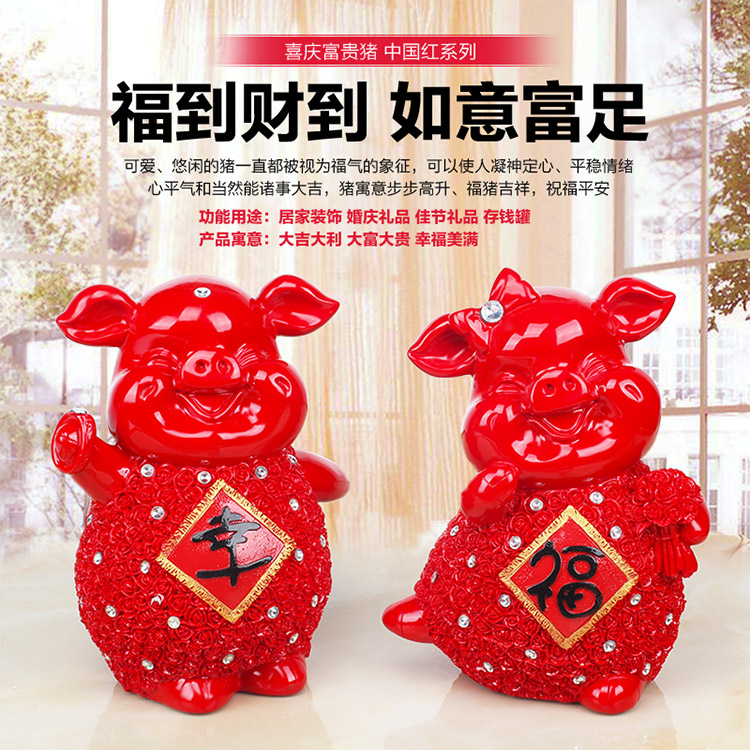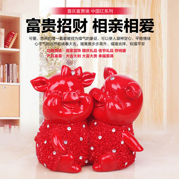 132紅色富貴豬單只創意可愛大號喜慶金豬存錢儲蓄罐擺件客廳裝飾工藝品情侶節日禮物