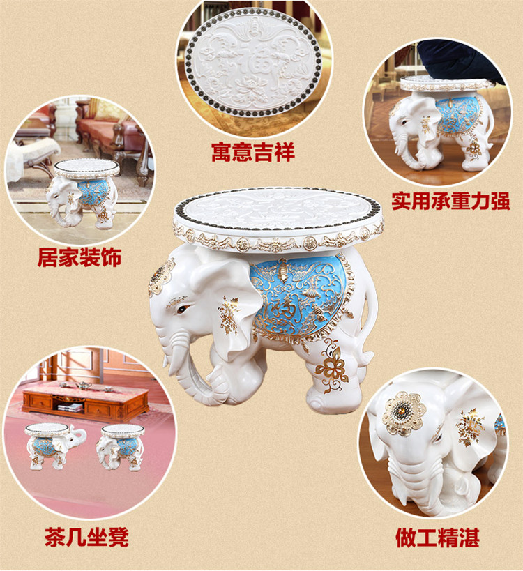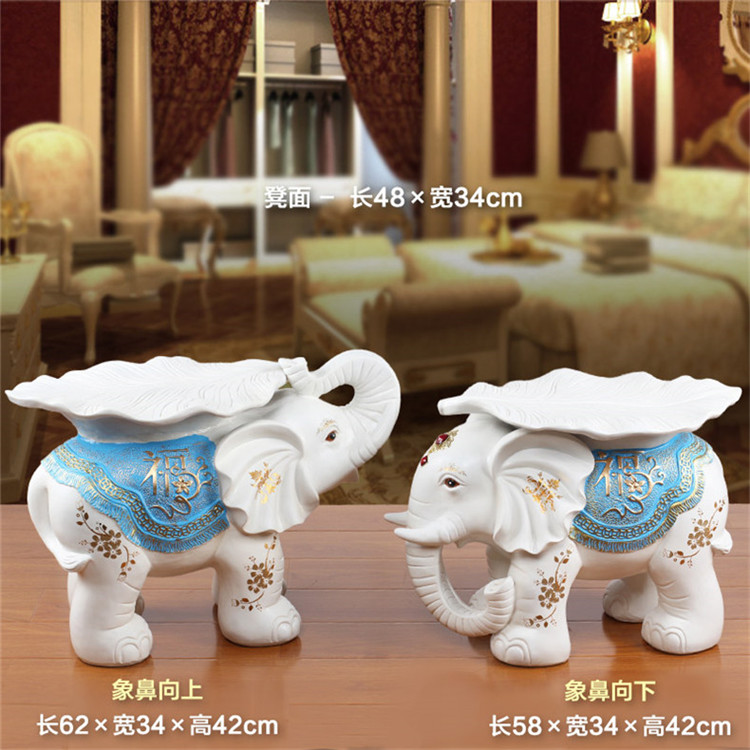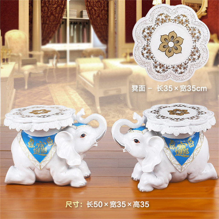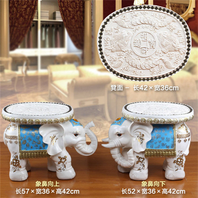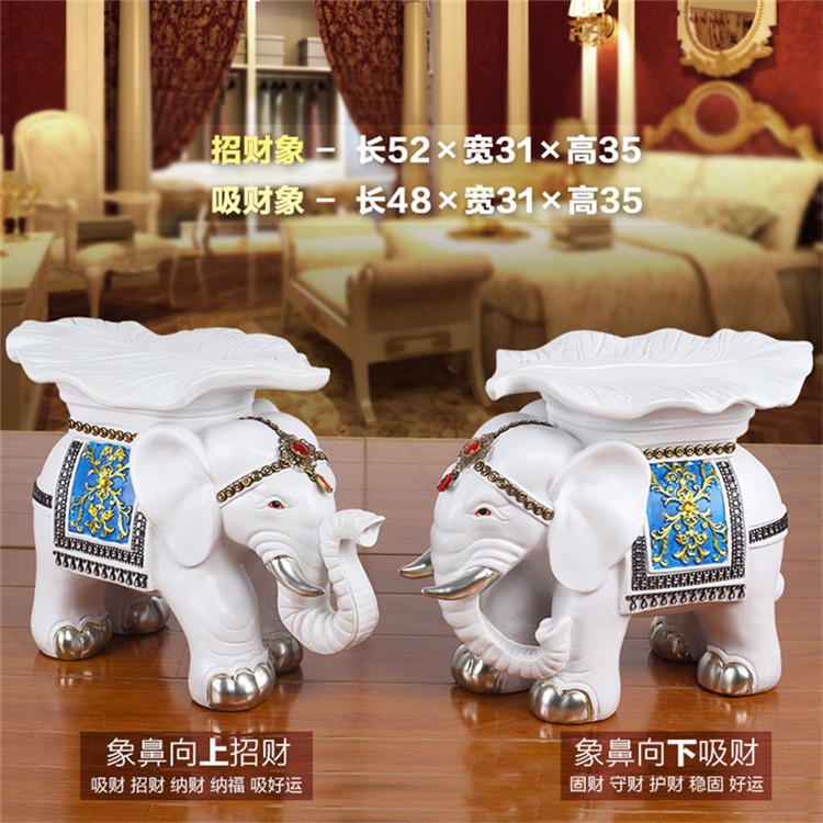035吸財象(白色)歐式創意仿實木大象換鞋凳家居裝飾品擺件客廳招財工藝品喬遷禮品