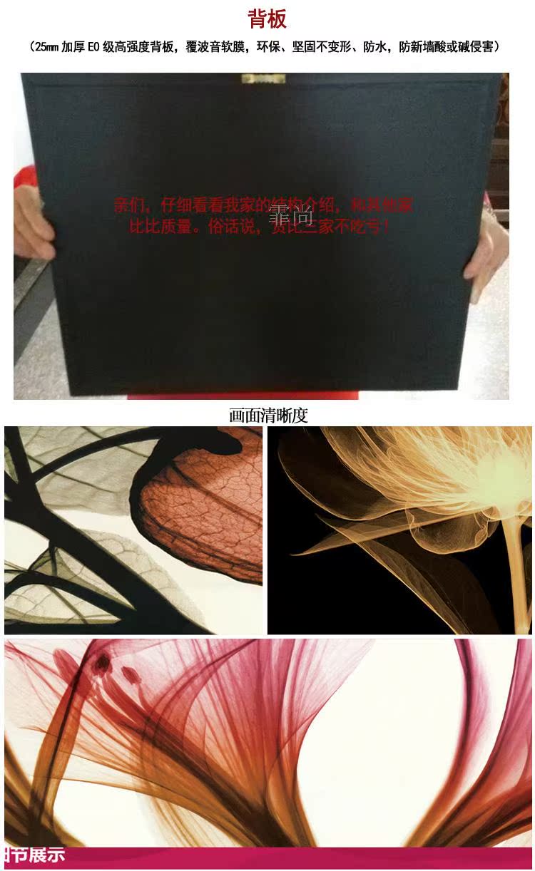 親愛的,新品——有框簡框裝飾畫上市啦!新品上市,成本價,先賺人氣,不賺利潤,價廉物美!!! 本新產品介紹: 本有框畫,分兩種類型: 一、簡約型:由外框、畫芯、E0級背板組成。畫芯相紙表面真空覆膜高檔UV亞光膜或十字布紋膜,缺省是布紋膜,不反光,,抗紫外線侵害,使得畫面色彩保質期長達15年。畫芯與膜高溫高壓貼合,永不起泡翹邊,隨意擦拭好打理。 框條使用高品質高分子材料,無毒無味、防潮、防裂、防蟲、防變形,可回收材料,綠色環保。框條寬20mm厚31mm。 背板采用E0級兒童級環保加厚25mm高密板,背面貼波音軟皮,環保、堅固不變形、防新墻的酸或堿的侵害!。 安裝拋棄煩瑣,默認采用細鋼釘懸掛或者無痕釘懸掛,無痕釘安裝不傷墻,需要者拍的時候備注一下,贈送藍丁膠加固,盡量少對您新家墻面的損害,便捷安裝,省心省力。 二.標準型結構:在簡約型架構的基礎上加卡紙和薄片有機玻璃,使得畫面具有層次感。