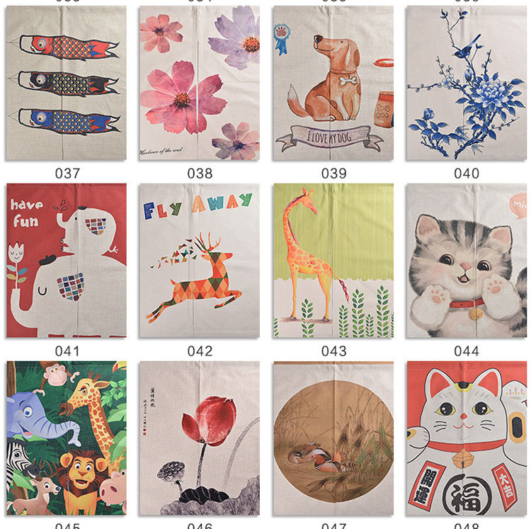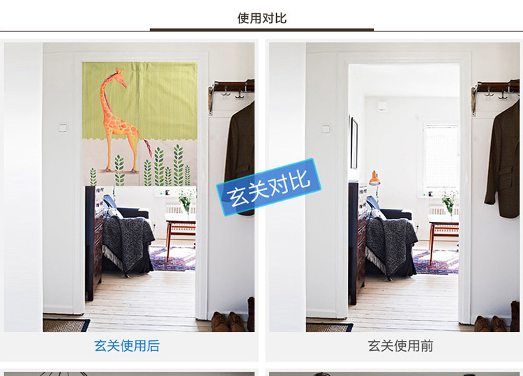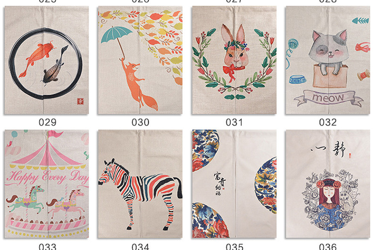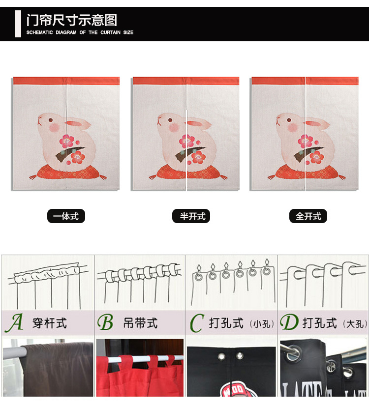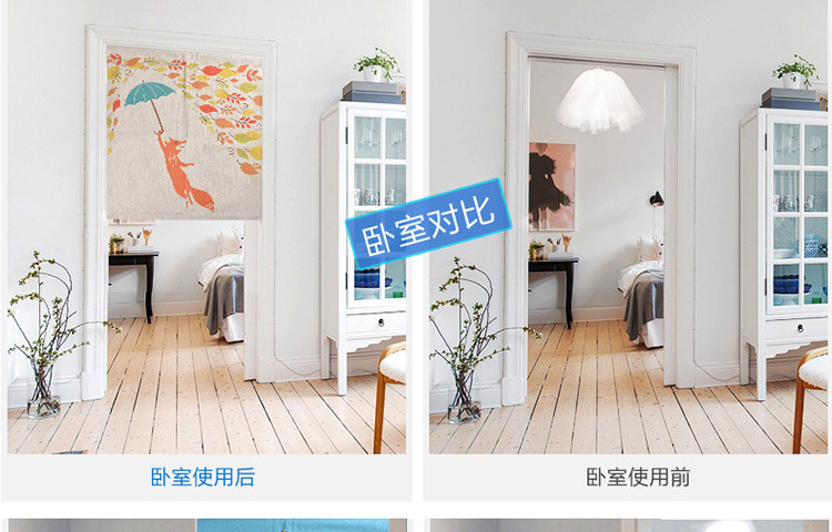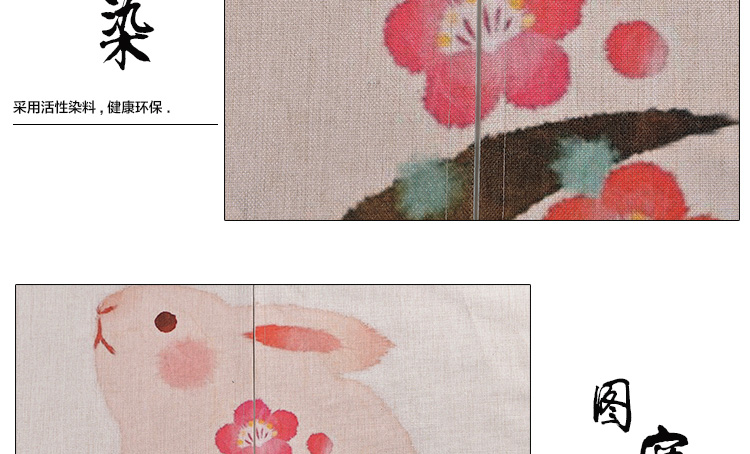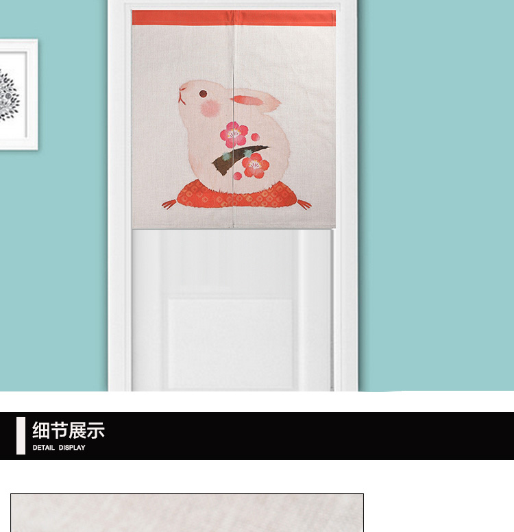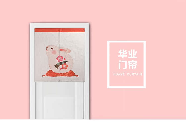 米白色85*90cm兔子北歐布藝門簾臥室玄關風水客廳衛生間棉麻隔斷半開簾子可定做