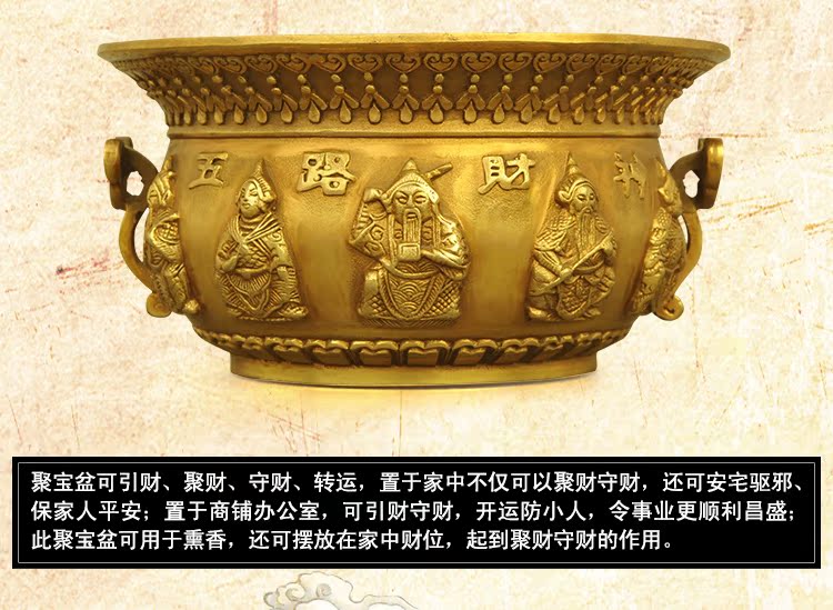 五路財神款一聚賢閣開光純銅五路財神聚寶盆家居工藝品擺件招財喬遷工藝品擺設
