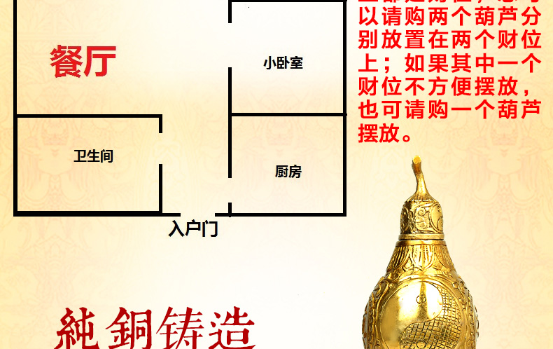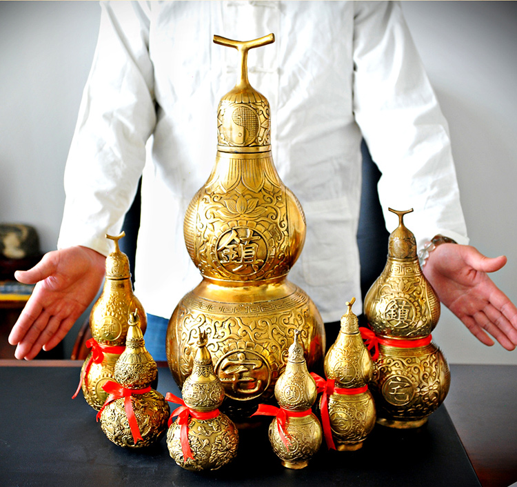 中號款式一聚賢閣開光八卦開蓋純銅葫蘆擺件橫梁煞增加夫妻感情家居裝飾品