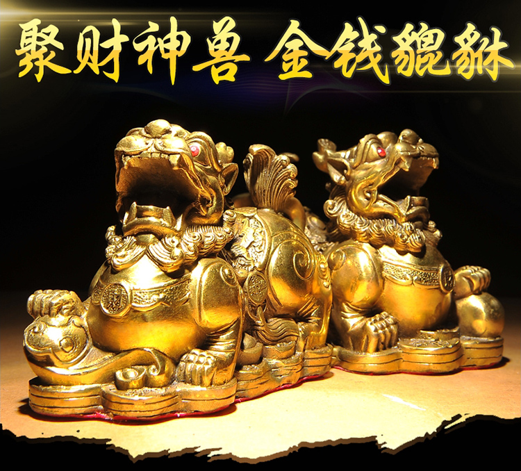 中號一對款聚賢閣開光純銅貔貅擺件一對招財鎮宅辟邪客廳家居風水擺設工藝品