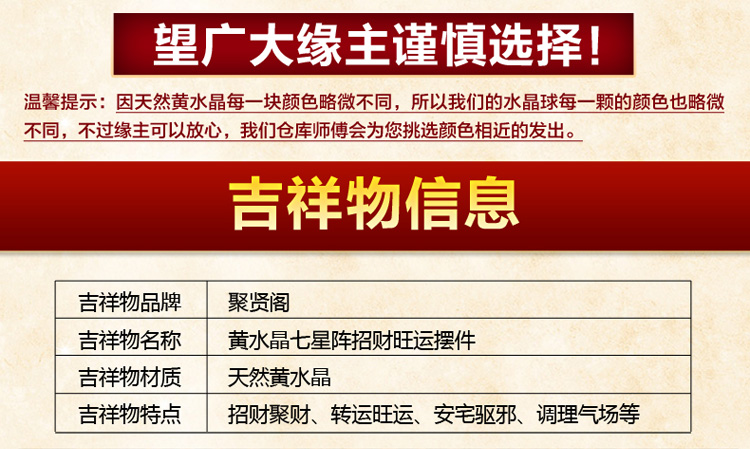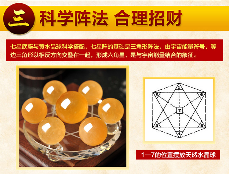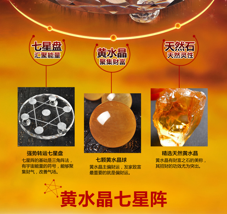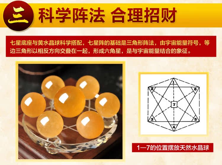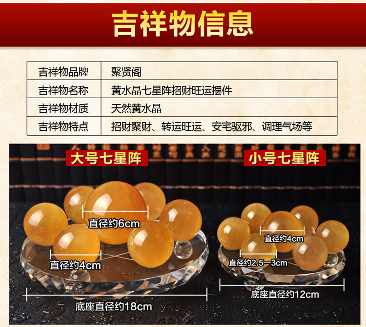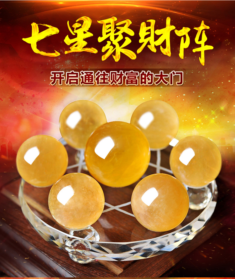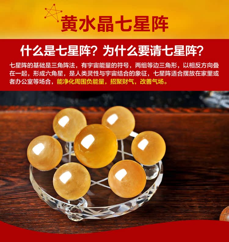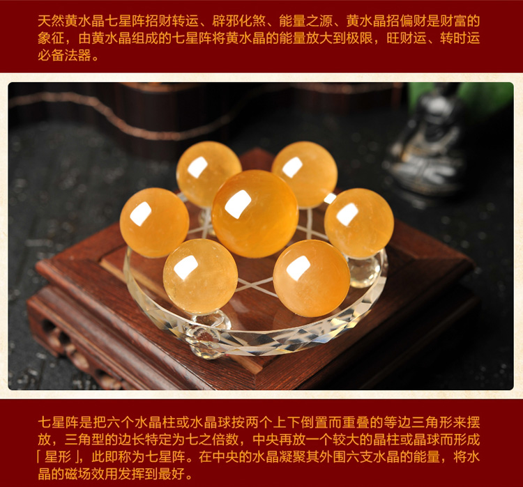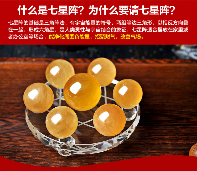 大號七星陣聚賢閣開光黃水晶七星陣擺件 旺財寶水晶球家居招財風水擺件