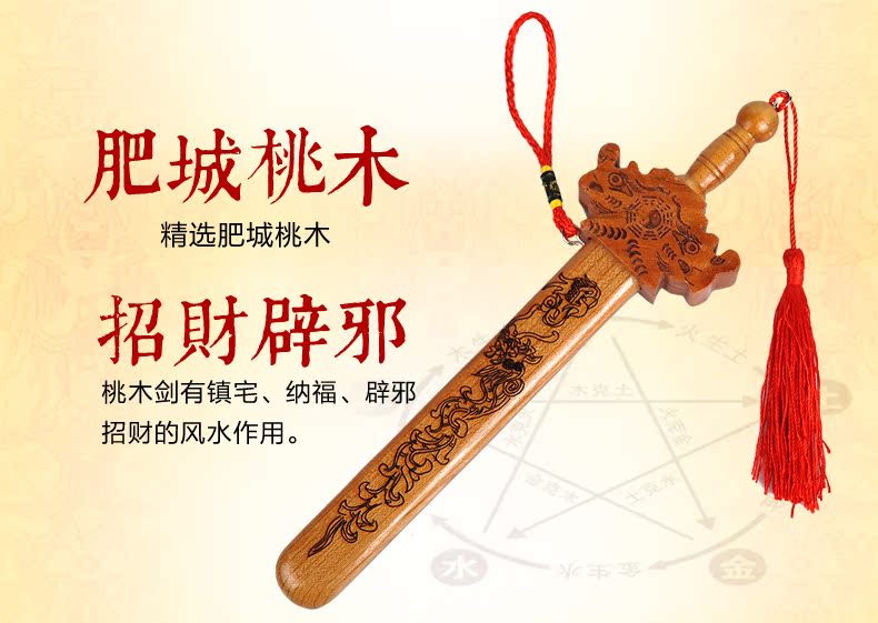 七星辟邪劍聚賢閣開光天然桃木劍擺件木雕掛件四神獸龍鳳龍頭辟邪家居裝飾品