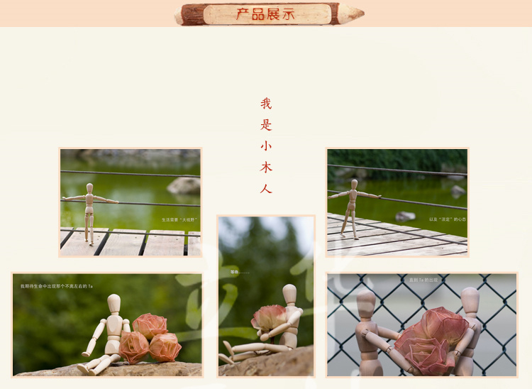| 本公司大部分商品6一10天到貨。不接急單。急單的客戶請不要下單。感謝諒解與合作! 【商品名稱】:12英寸木人模型 30cm漫畫木頭人 素描木偶人關節人 木頭關節人偶 【功能描述】:繪畫素描--仿照人體比例設計,14處關節可隨意靈活轉動 智力玩具--小小的關節人,能讓我們小朋友充分發揮想象能力,開發小孩子的動手能力!! 最佳搭檔--因為可以隨心所欲地擺出多種造型,即可以做你畫畫的好幫手,也可當做您 家居擺設的飾品,還可以是動漫學者擺設POS的好對像!! 【材質說明】荷木 【材質特點】1.荷木,顏色偏白高雅而簡潔,木紋條理清昕而整潔的原木材,經高溫烘干再漂白處理,烘干有具備防霉防腐的作用,漂白的目的是少原木色差,整體顏色更加一致性。 2.內置五金件如彈簧,螺絲,鐵片等均經高檔電度處理過具備防生銹的優點。 3.膠水白乳膠,膠水為關節處的固定物,在處理時細節上盡量做到外觀膠水整潔而少外漏。