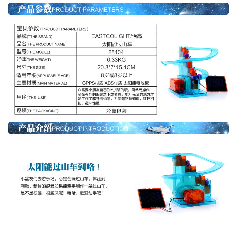 藍色怡高 太陽能過山車創意實驗器材兒童手工DIY科技組裝小制作過山車