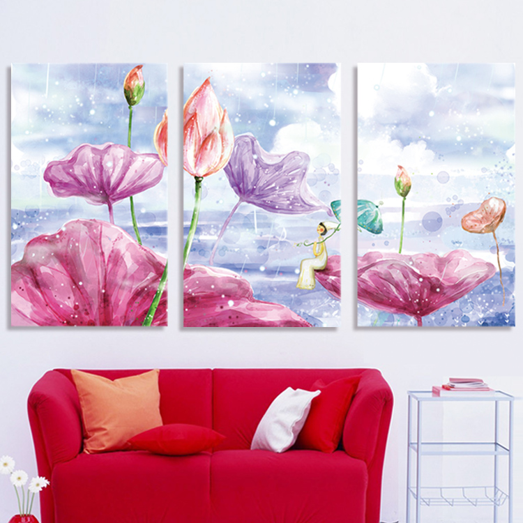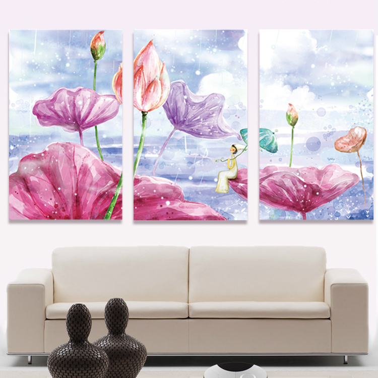 精準印花3D十字繡夢里荷塘三聯畫系列 大幅客廳新款十字繡