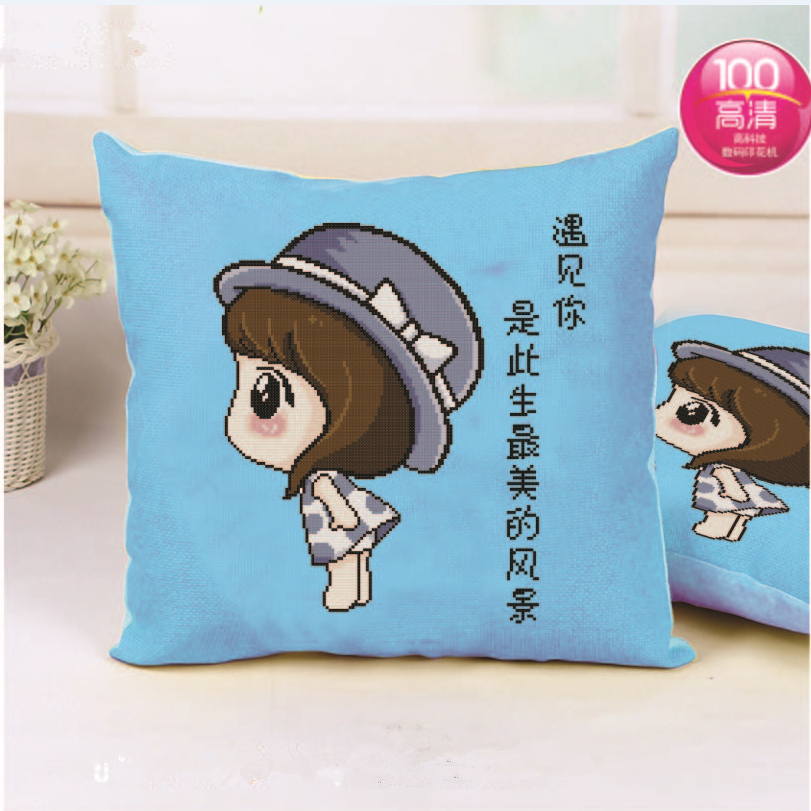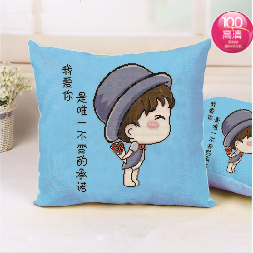 新款十字繡抱枕客廳臥室可愛情侶浪漫動漫靠枕頭套件印花繡