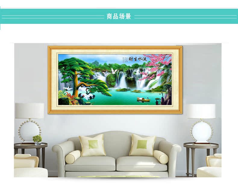 主圖片款流水生財174*78CM是鉆石畫圓鉆,貼船梅花迎客松
