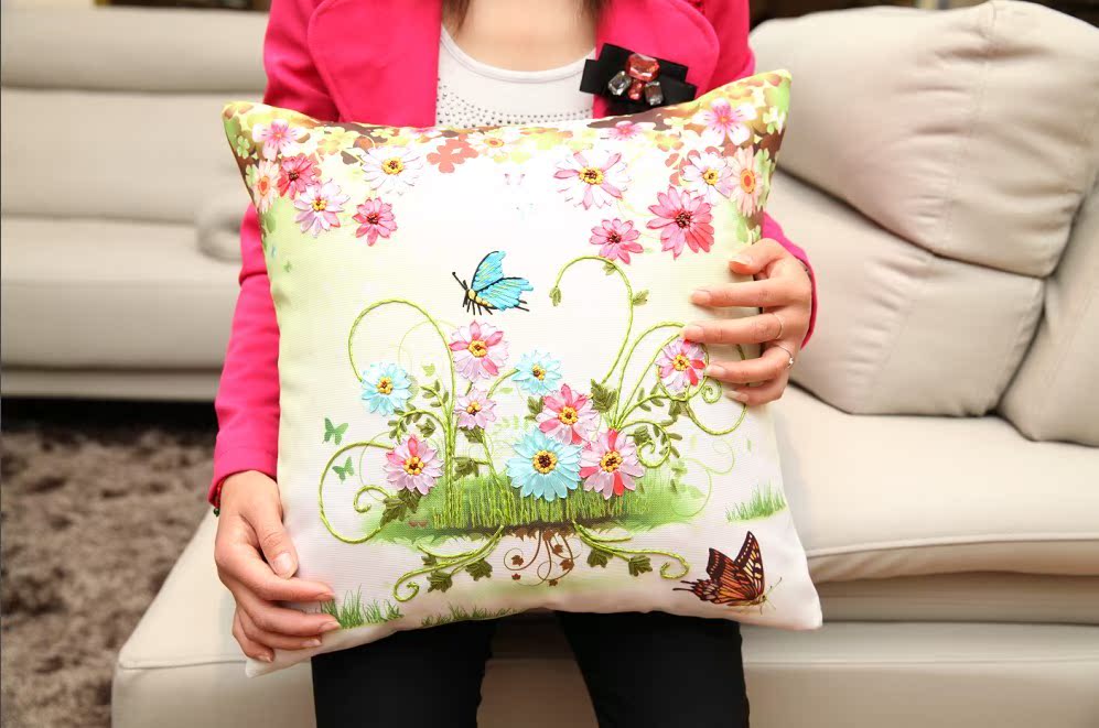| 本公司大部分商品6一10天到貨。不接急單。急單的客戶請不要下單。感謝諒解與合作! 本產品包含:印好圖抱枕底布、足量的配圖絲帶、針一枚或兩枚、產品說明圖、針法圖解 產品規格:45*45CM 配套的枕芯尺寸為50CM,單買12.8一個的哦!所以搭配買超劃算! 1.花前蝴蝶飛飛