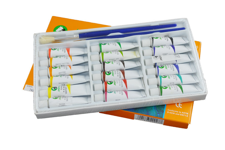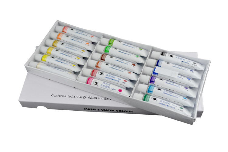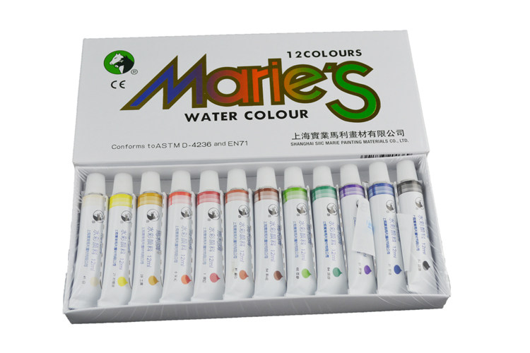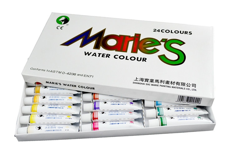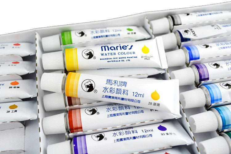 廠家:實業馬利畫材有限公司說明:本品選用國際上新一代美術顏料包裝-鋁管,色彩鮮艷、外觀漂亮,有新穎高雅之感,更重要的是,鋁管無鉛毒,可避免與傳統的以鉛為主體的金屬接觸,因鉛毒對人體危害,尤其對兒童、學生危害更大,影響大腦正常發育,阻礙智力發展。本產品經過專業毒物學家測試,符合ASTMD-4236和EN71標準。 馬利牌水彩畫顏料選用優質顏料精煉膠汁,制成膏體質地細膩,可任意與水混合、色彩鮮艷、繪畫效果好,對專業和業余繪畫者,以及學生是理想的材料。