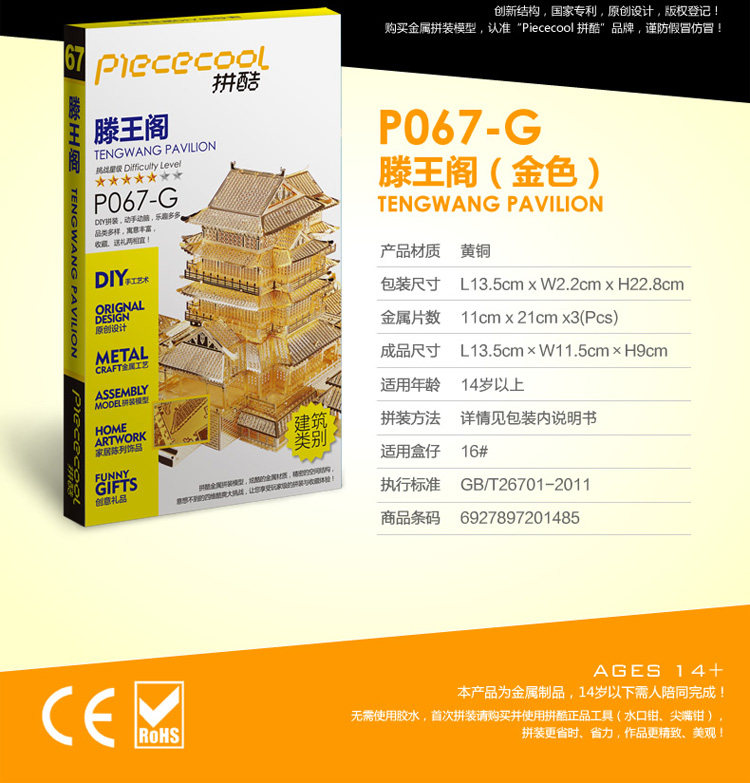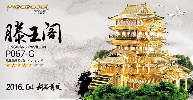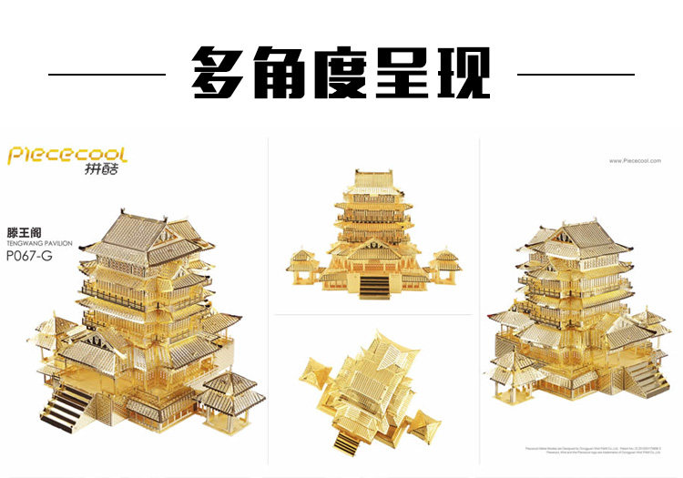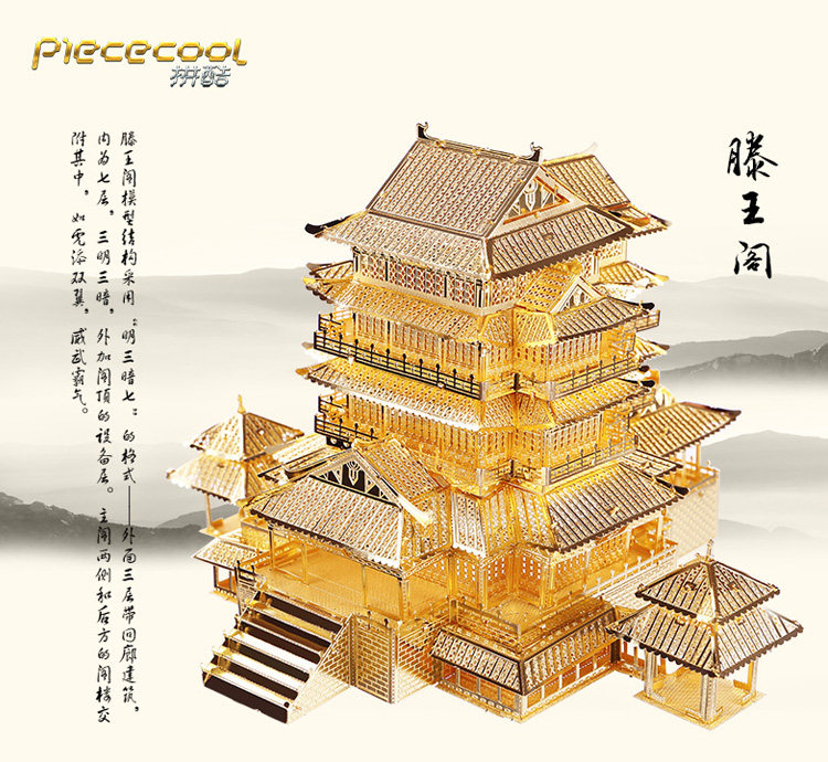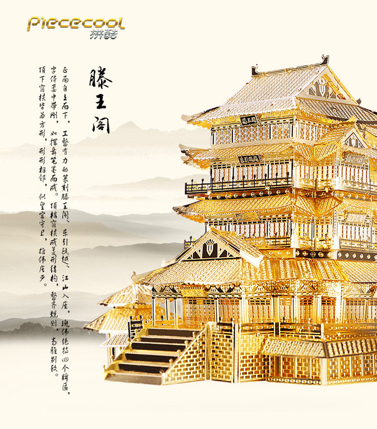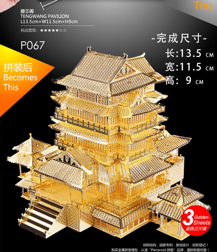 金色金屬拼圖模型古建筑滕王閣3D立體拼裝成人益智玩具送朋友創意禮品