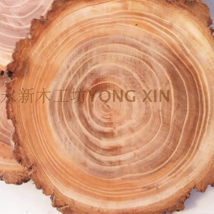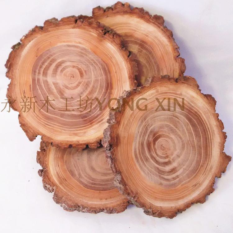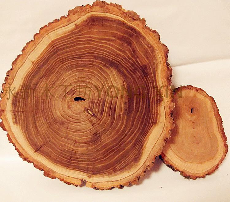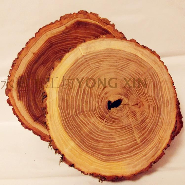 有洞:直徑20-23厘米榆木年輪片 榆木木樁帶皮圓木片 藝術設計模型擺設木塊 2CM厚