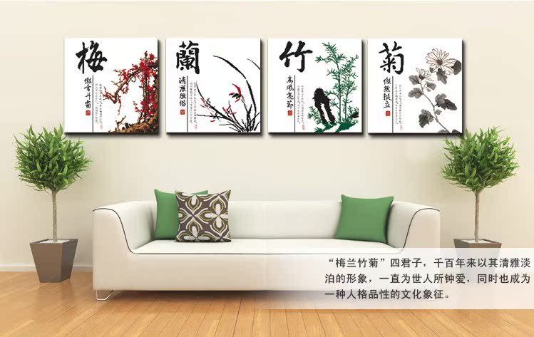 印花十字繡客廳風景裝飾大畫大幅套件 四聯非三聯畫梅蘭竹菊