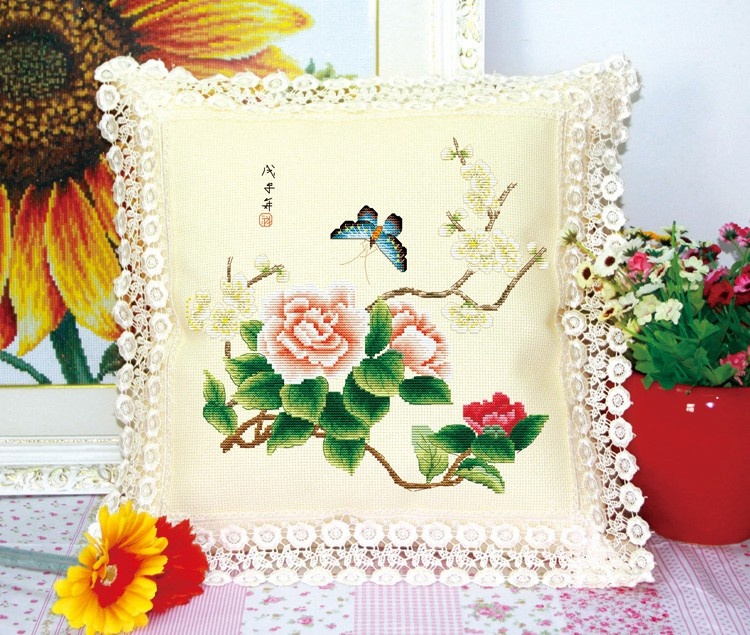 單個的價格,枕套尺寸 11CT:不含花邊45x45cm,含花邊48*48CM,黃色繡布