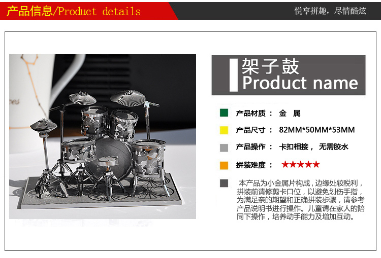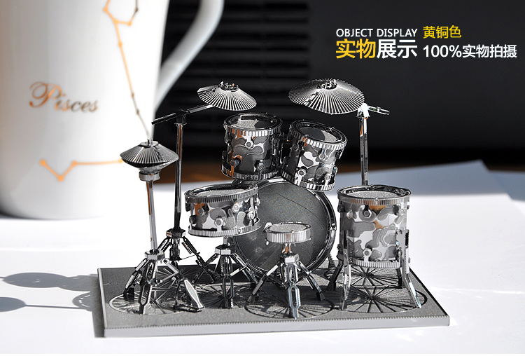 不銹鐵3D立體模型拼圖diy金屬拼裝樂器架子鼓 家居辦公室擺件 精美創意