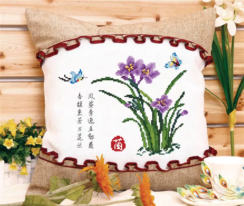 套件包括: ?1.繡線:足量高品質線 ?2.繡布:韓國繡布 ?3.圖紙:高清晰彩色效果圖 ?4.繡針:德國金尾鈍頭針1~2枚 ?5.說明書:十字繡制作說明書一份 ?6.本套件不包括枕芯 100%精準印花不偏格