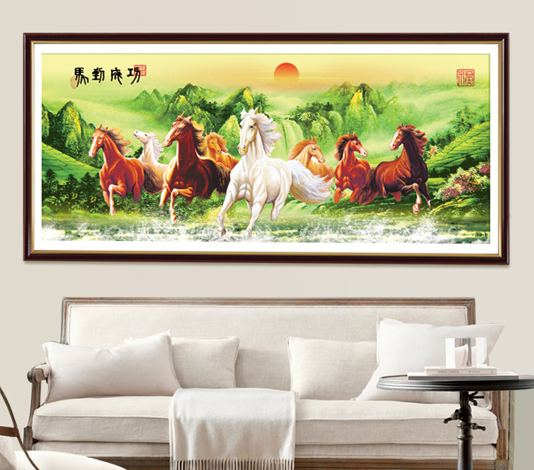 3D十字繡 精準印花馬到成功春意盎然八駿圖 客廳大畫新款正品