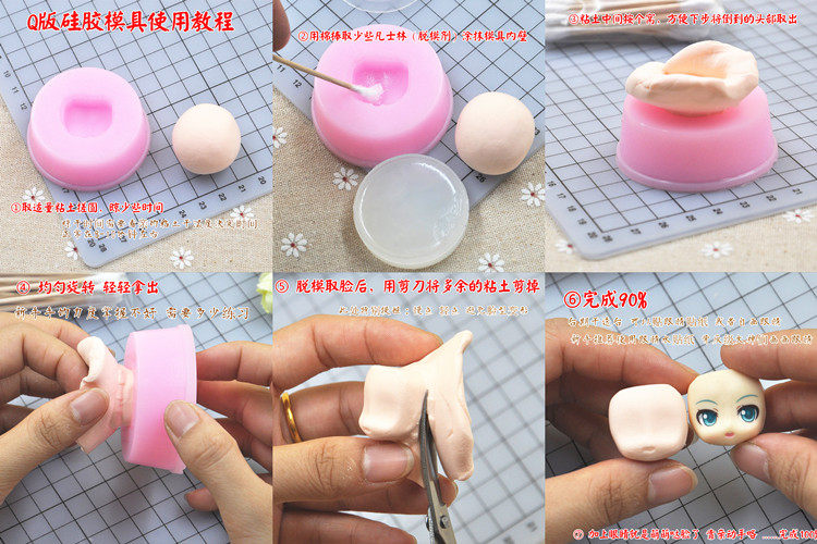 4號 閉眼開嘴款超輕粘土臉模軟陶模具正比人臉模具bjd硅膠臉模具翻糖翻模臉