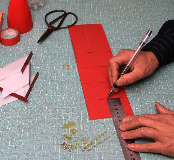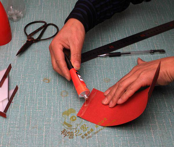 按原先畫好的等分線粘上半成品尾翼