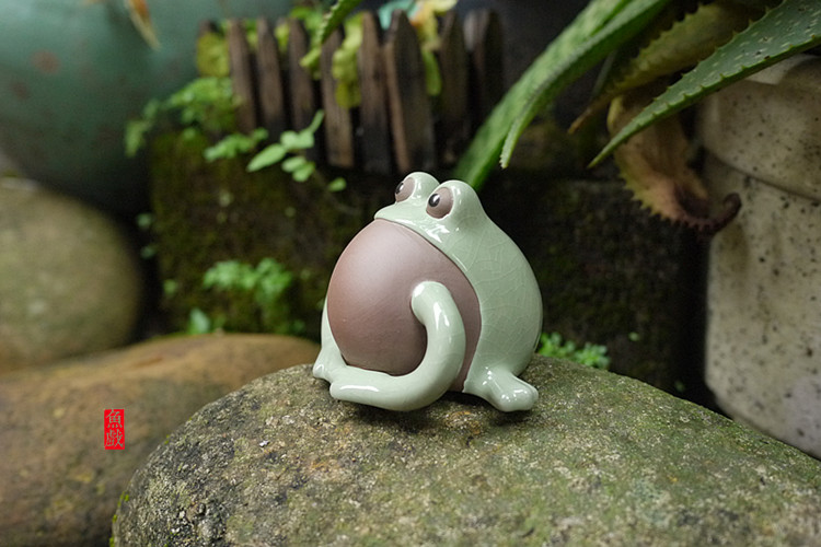 魚戲 精品手工紫砂茶寵 可養開片哥窯青蛙擺件茶席茶道零配茶玩