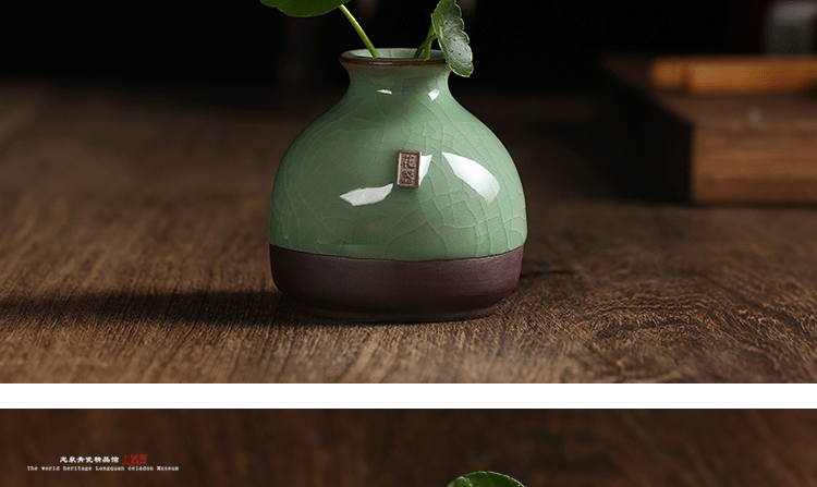 荷葉花器(小號哥窯梅子青冰裂)龍泉青瓷花瓶擺件客廳插花陶瓷水培容器綠蘿現代簡約家居創意裝飾