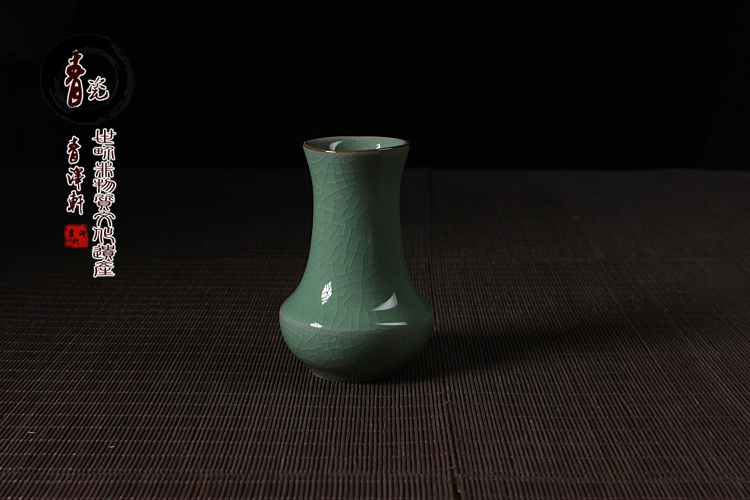 哥窯梅子青冰裂龍泉青瓷 創意擺件手工個性時尚小花器 工具瓶家居裝飾品花插花瓶