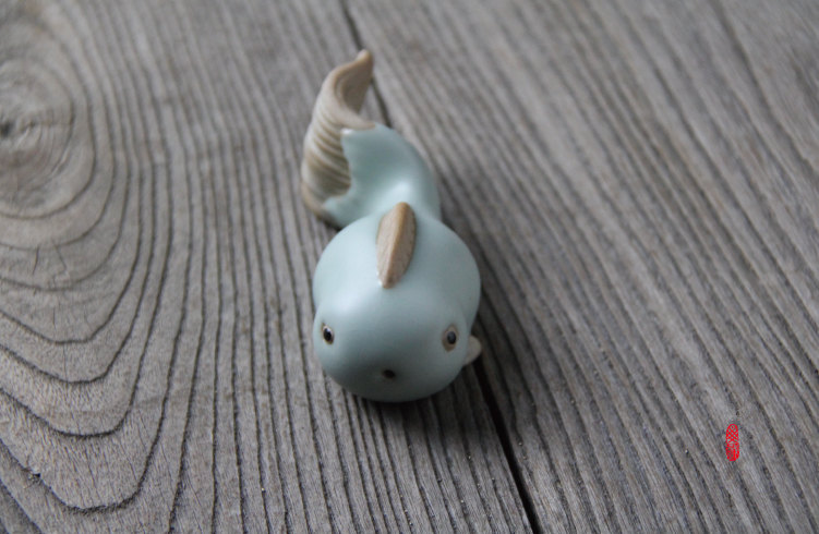 一只魚戲 精品汝窯陶瓷手工鯉魚茶寵擺件茶水可養開片年年有余魚筆托