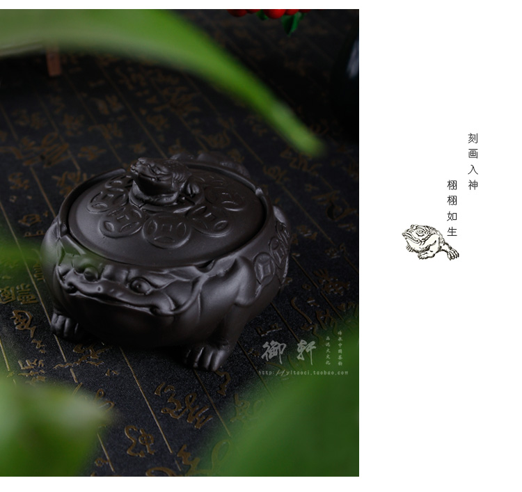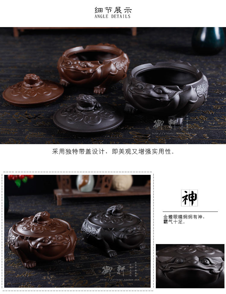 黑色金蟾紫砂煙灰缸宜興紫砂雕塑擺件茶玩茶寵實用帶蓋煙灰缸創意復古金蟾紫砂煙灰缸