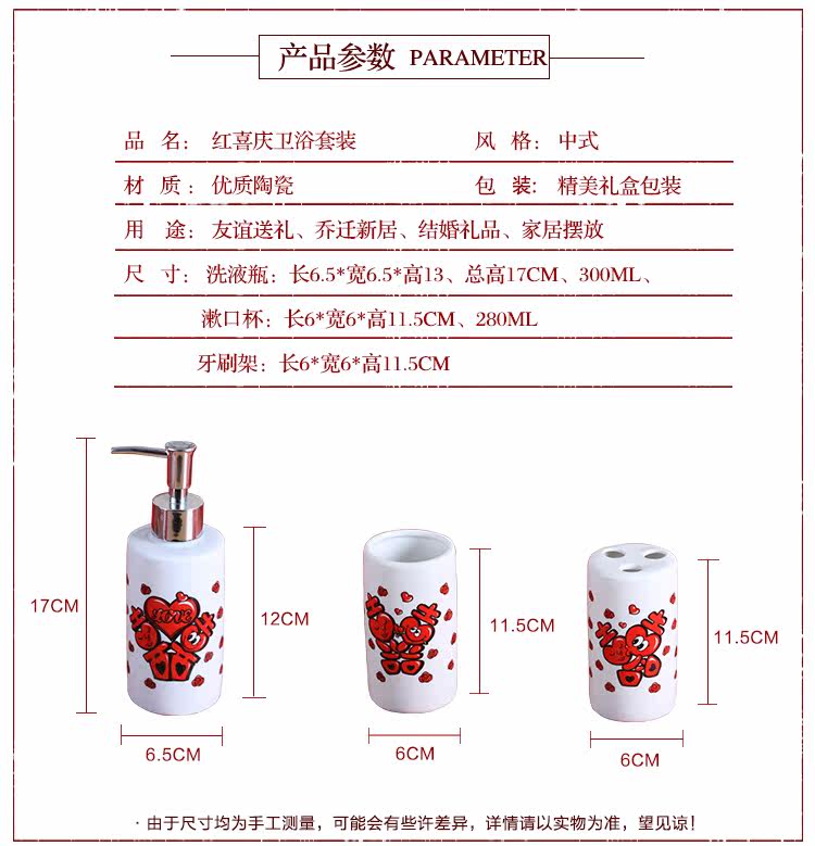 陶瓷雙喜浴室用品套件衛浴套裝新婚結婚禮物洗漱杯喜慶組合三件套
