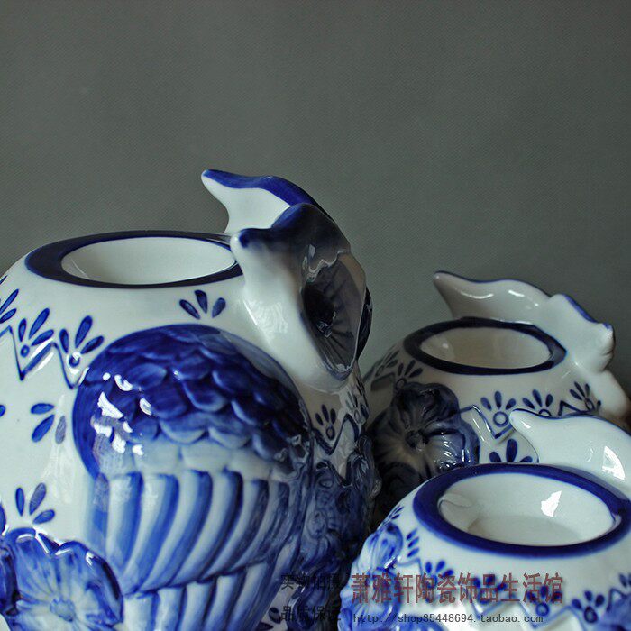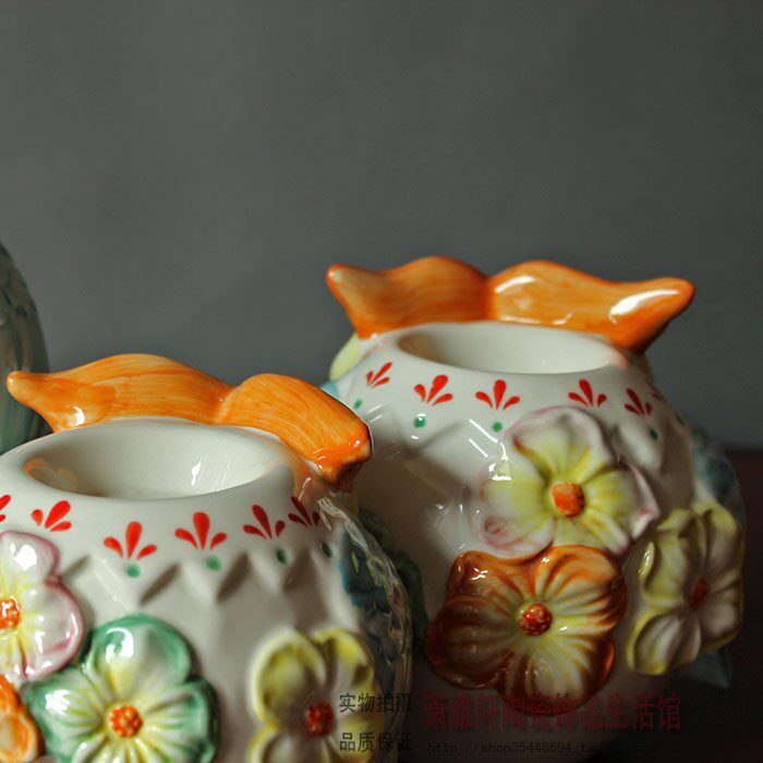 | 本公司大部分商品6一10天到貨。不接急單。急單的客戶請不要下單。感謝諒解與合作! 品名:田園彩繪陶瓷貓頭鷹燭臺擺件 規格:大號:高18cm,最寬處:17*20cm,底徑9cm,燭臺位4cm 中號:高12.5cm,最寬處12.5*14cm,底徑5.5cm,燭臺位4cm 小號:高10.5cm,最寬處12*12.5cm,燭臺位3cm左右{手工測量} 材質:陶瓷 工藝:手工彩繪 田園立體花紋陶瓷裝飾擺件燭臺 貓頭鷹造型 大中小三個規格 有彩繪與青花兩種花色 規格花形相同,適合與中式、歐式、田園各類風格配搭,店主全部實物自然光拍圖片,但不保證完全無色差。 彩繪田園款