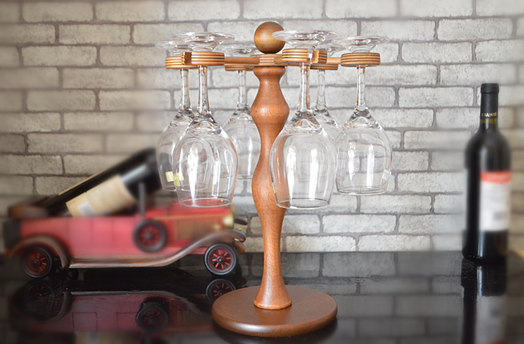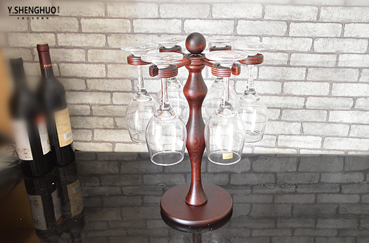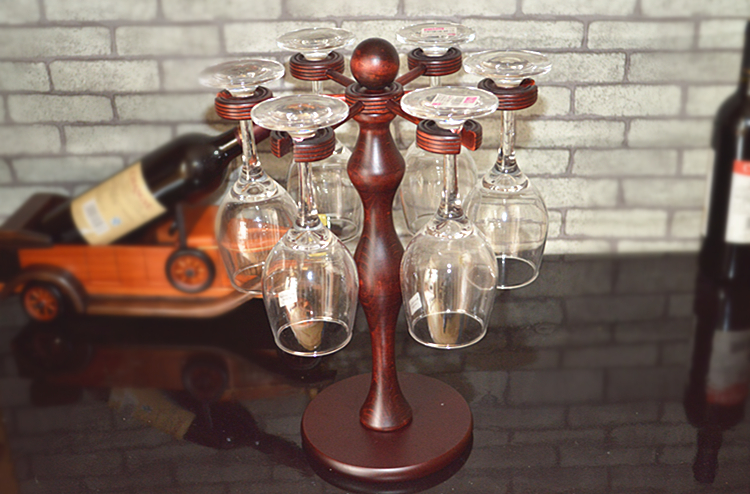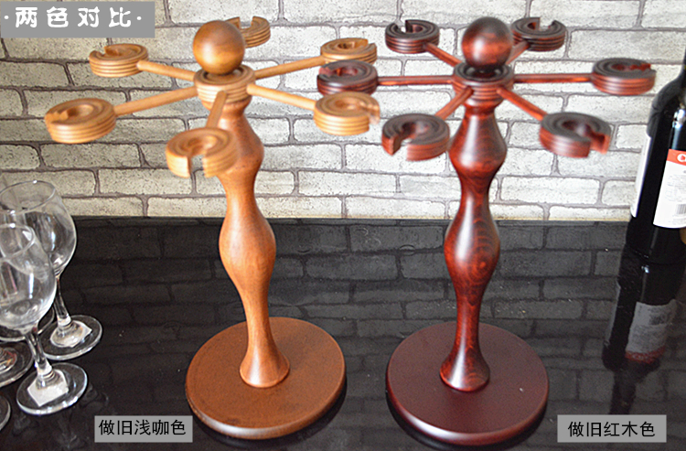 做舊紅木色(偏棗紅)紅酒杯架高腳杯架倒掛懸掛實木質創意歐式酒柜吧臺酒架擺件 送禮
