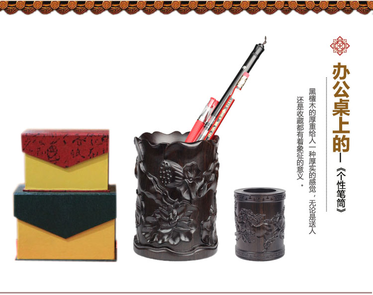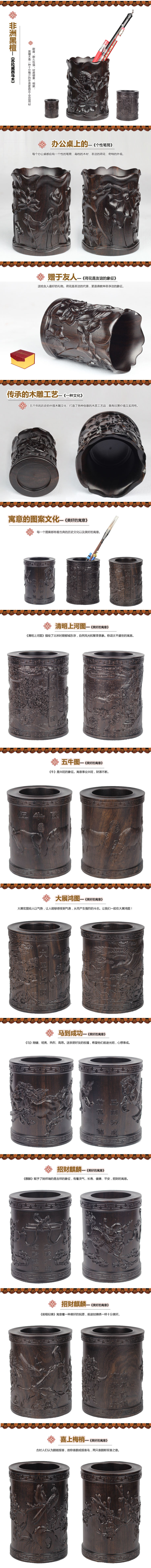 馬到成功黑檀 實木筆筒擺件紅木質辦公桌書房創意禮品木雕高檔筆筒