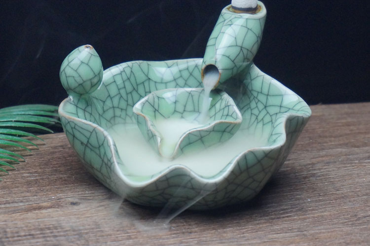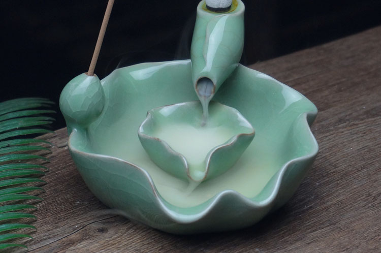 哥窯梅子青鐵線龍泉青瓷香爐倒流陶瓷香爐流煙熏香爐創意擺件塔香高山流水香道