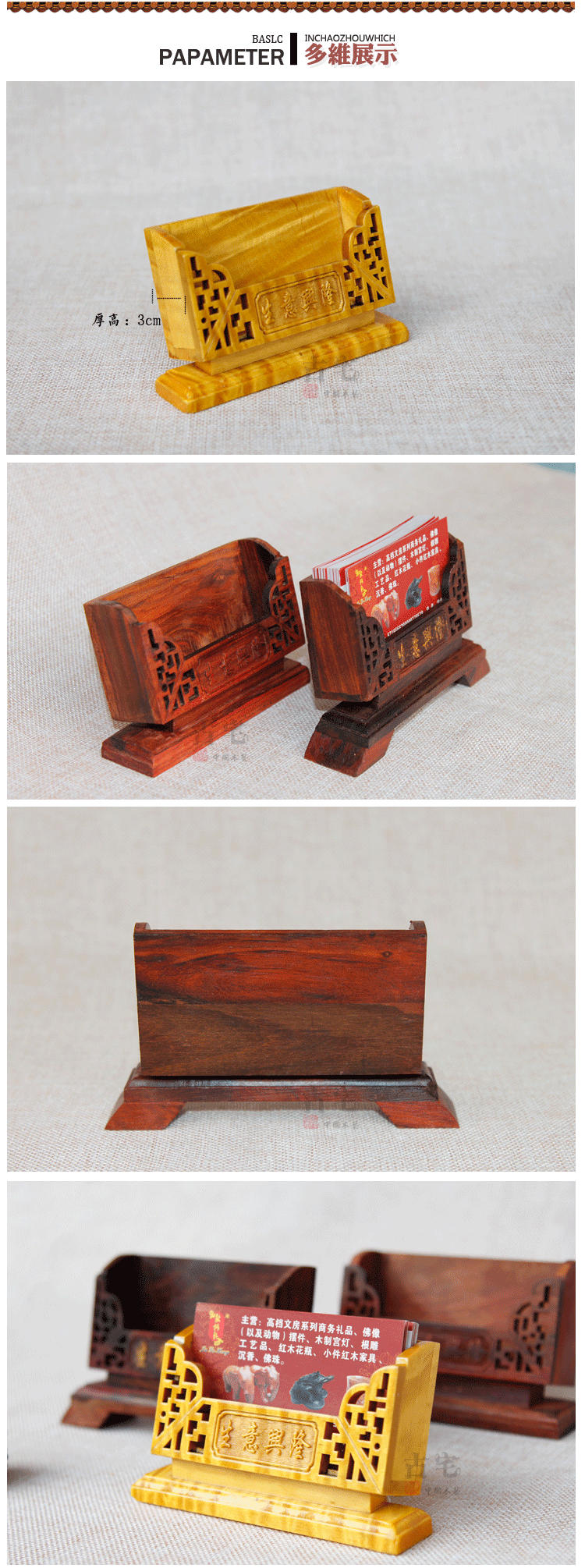 紅酸枝底座—款紅酸枝 名片盒商務辦公復古典木質時尚實木質雕刻創意桌面擺設
