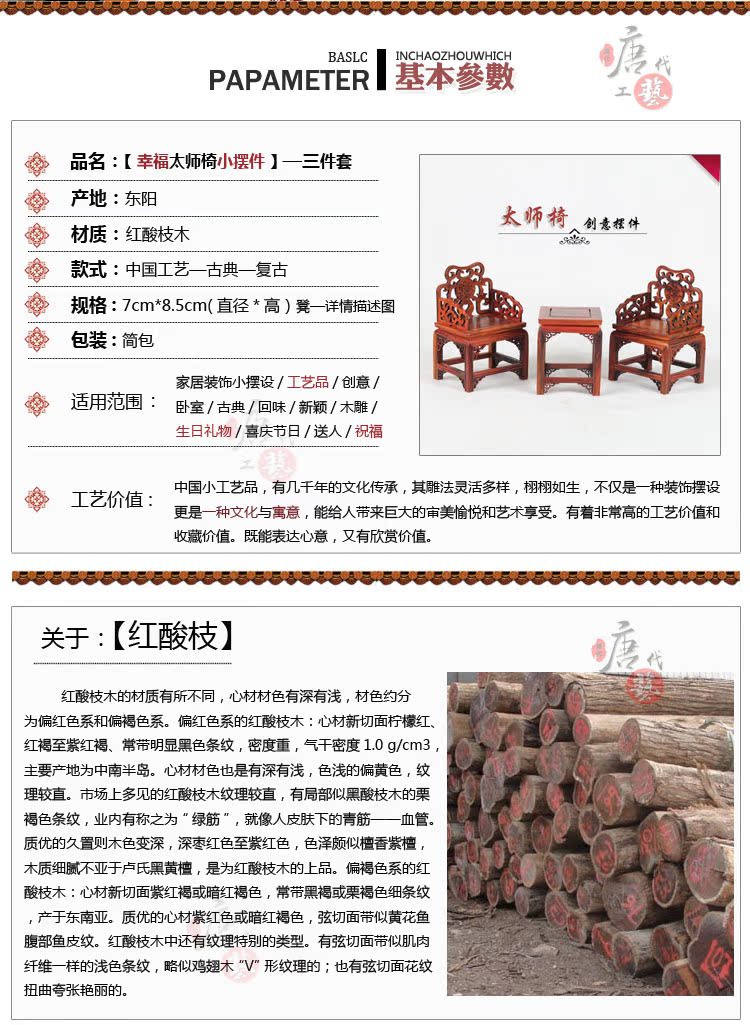 紅酸枝 太師椅微型迷你家具小擺件創意擺件木質工藝禮品中國木雕