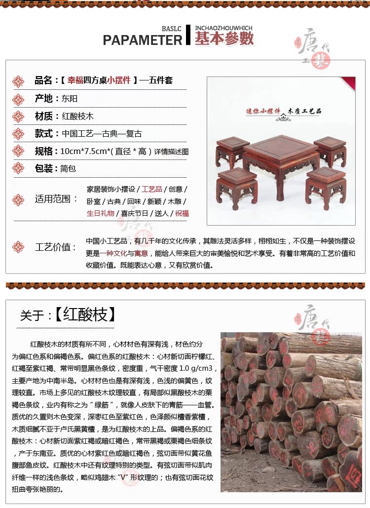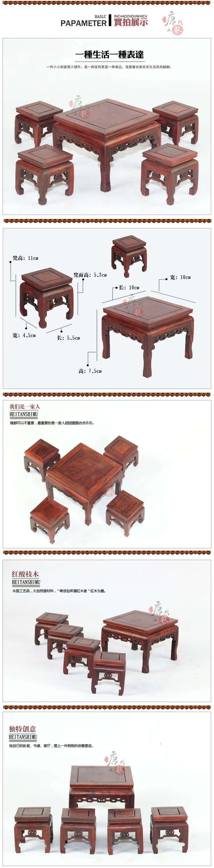 紅酸枝 小桌凳五件套 現代簡約裝飾擺件 實木紅木工藝品桌面擺設