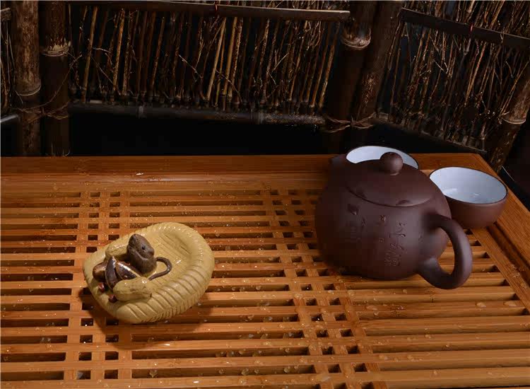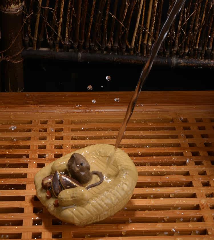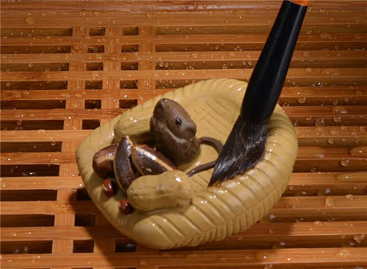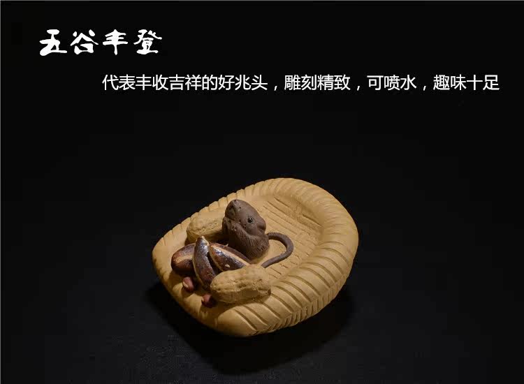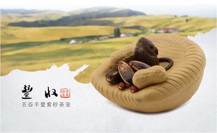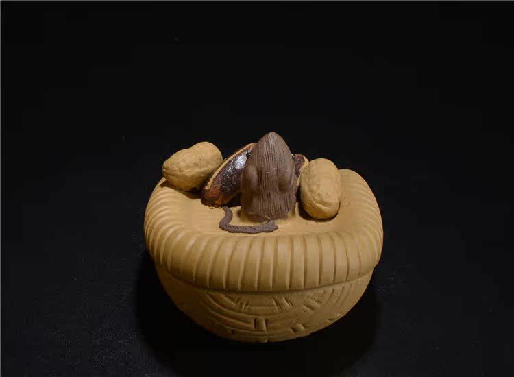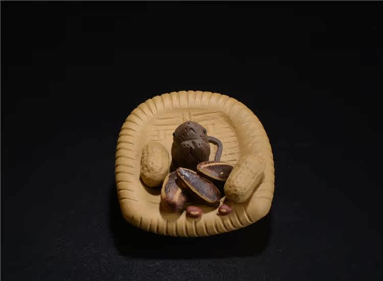 段泥紫砂花生簸箕五谷豐登 噴水宜興紫砂茶寵擺件 手工茶玩鼠茶具