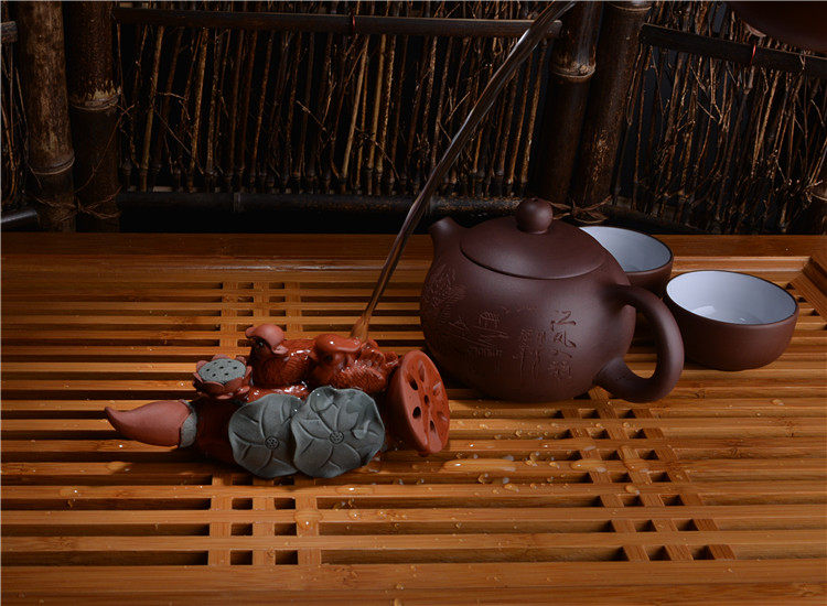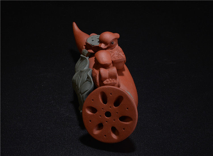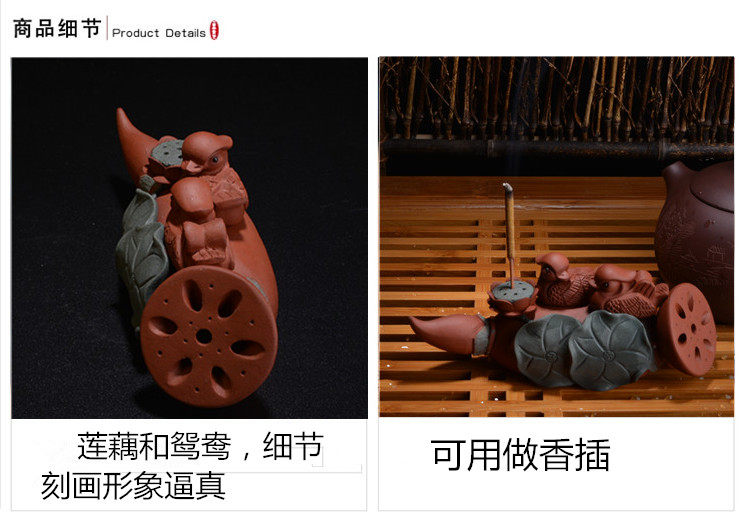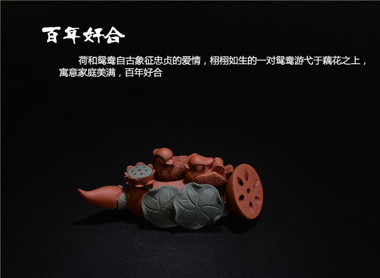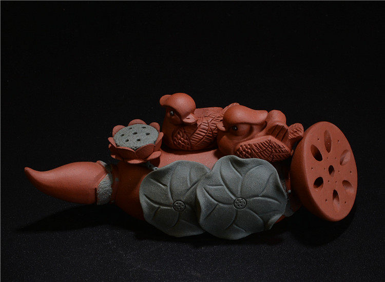 段泥黃宜興紫砂茶寵香插擺件百年好合鴛鴦蓮藕荷花茶玩香爐茶寵擺件