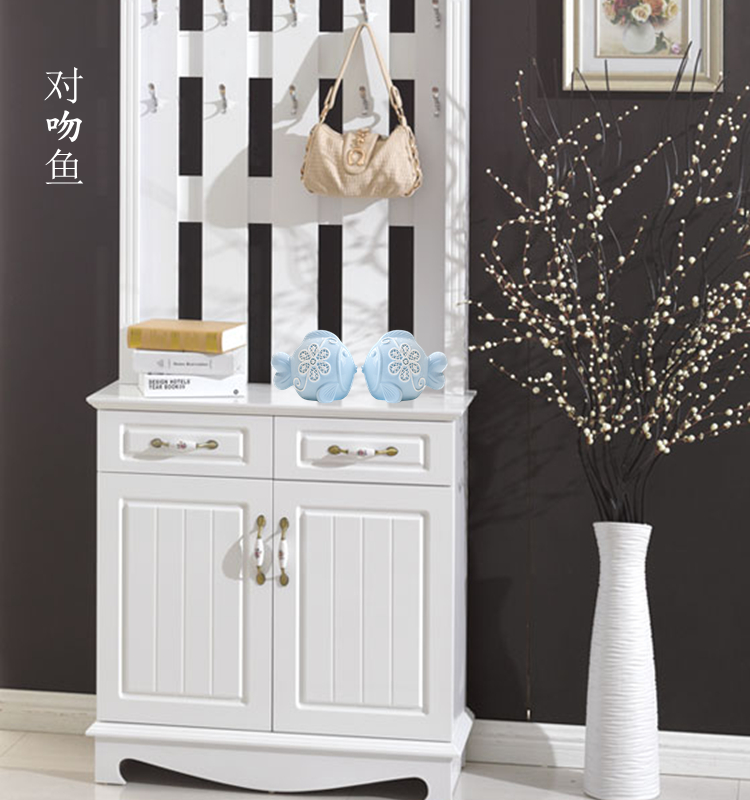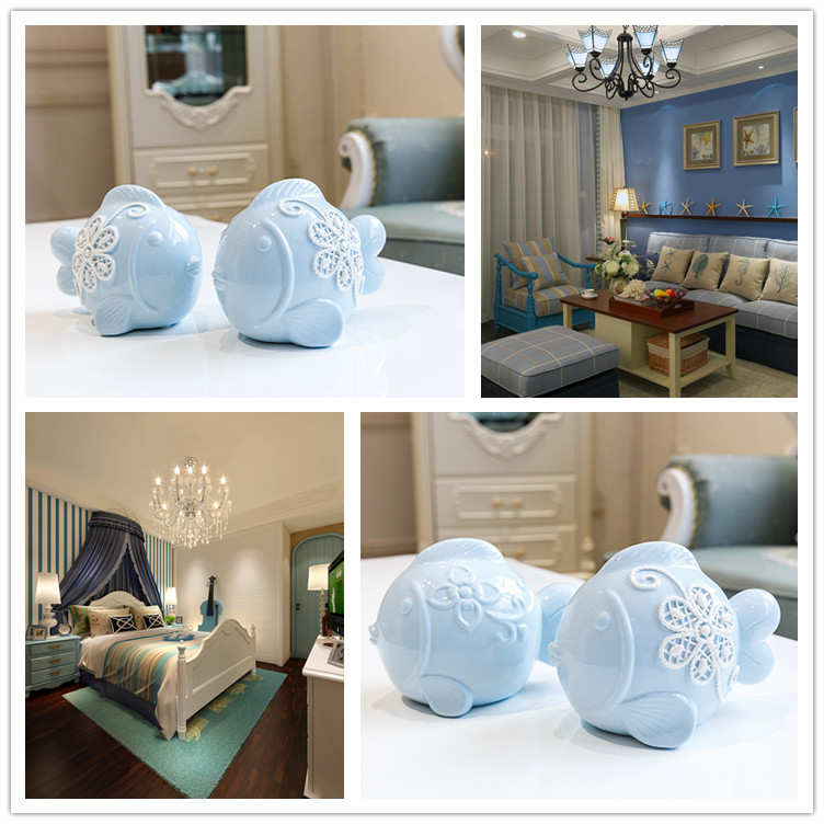 天藍色現代電視柜客廳工藝品擺件田園創意陶瓷婚慶魚家居裝飾品禮品